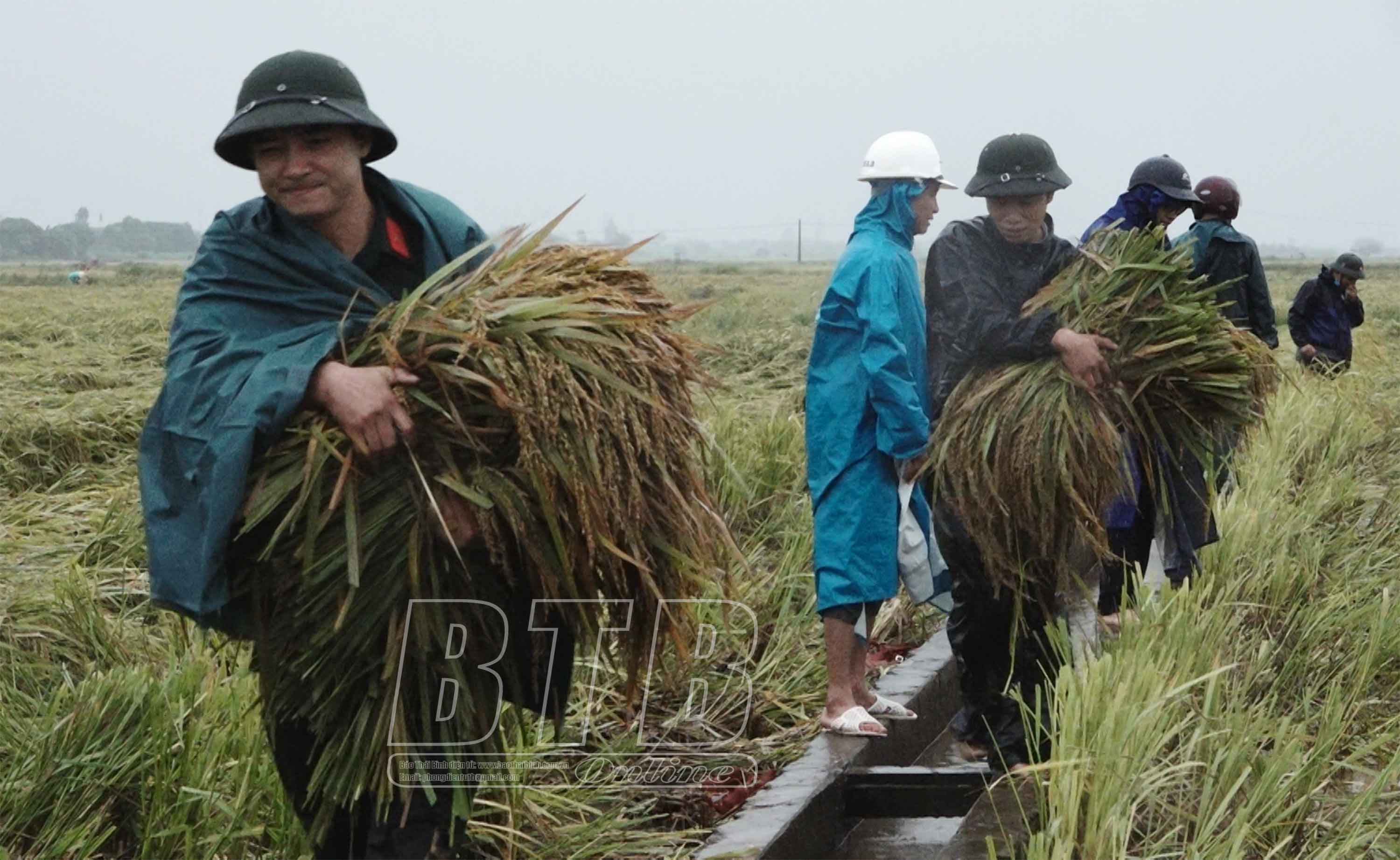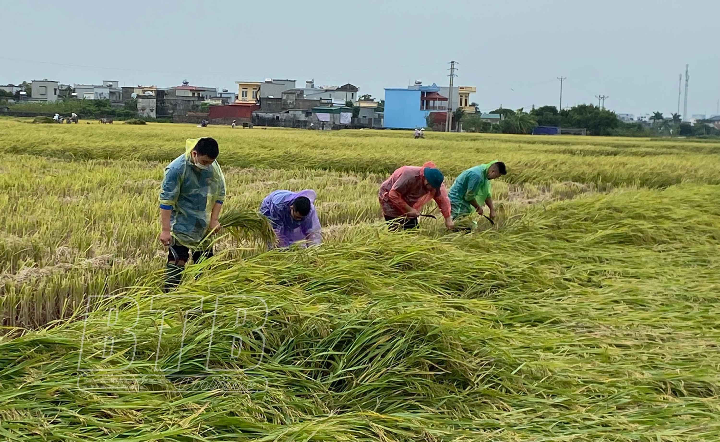Do ảnh hưởng của cơn bão số 7 đã gây mưa to và gió mạnh, khiến nhiều diện tích lúa mùa của nông dân bị ngã đổ, ngập úng trong nước. Để giảm thiểu thiệt hại cho nông dân và chủ động ứng phó với bão số 8 đang di chuyển vào đất liền, sáng ngày 13/10, Ban Chỉ huy Quân sự thành phố Thái Bình phối hợp với Thành đoàn tổ chức gặt lúa giúp bà con nông dân.
