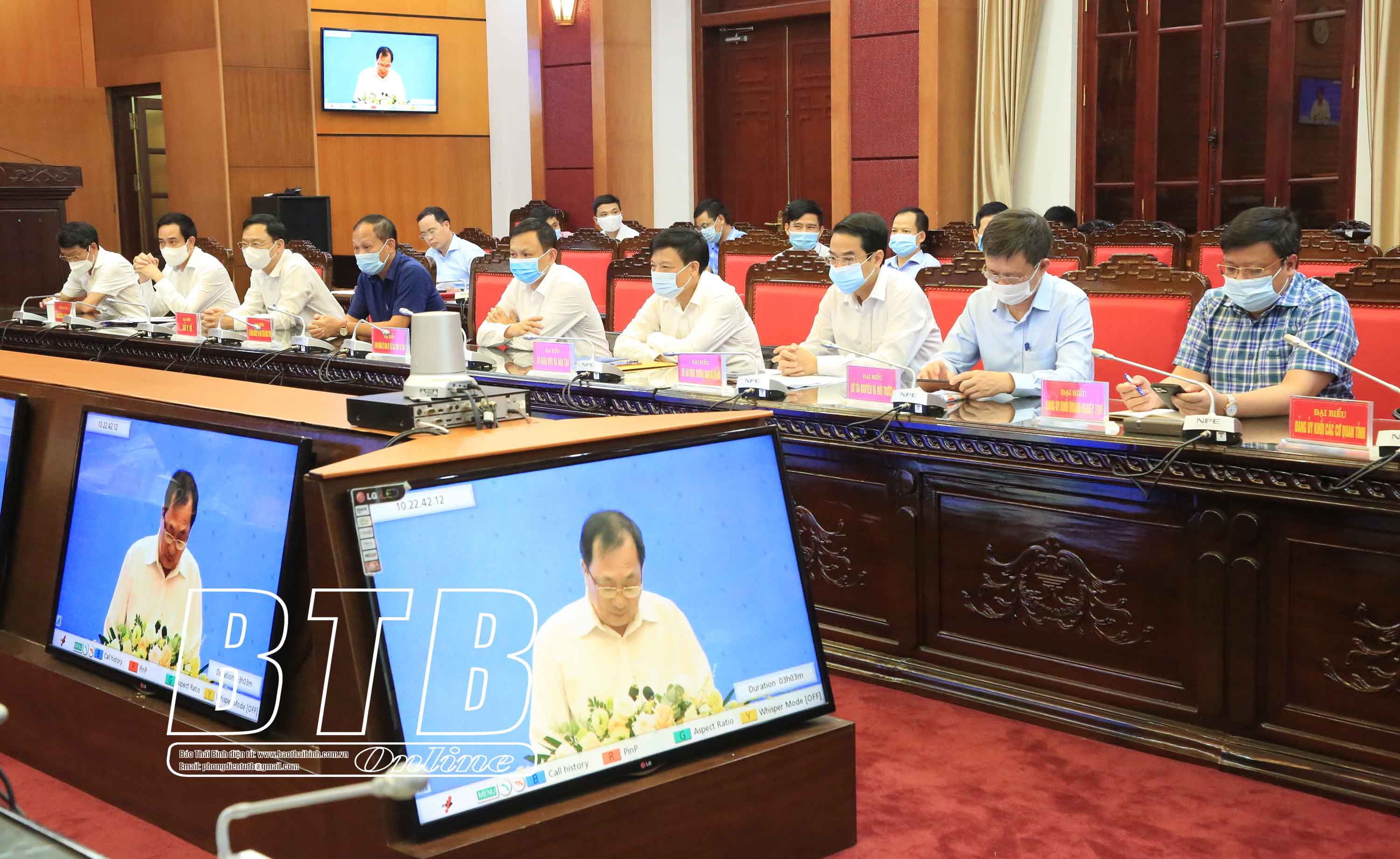 Tại điểm cầu Thái Bình, đồng chí Nguyễn Tiến Thành, Phó Bí thư thường trực Tỉnh ủy, Chủ tịch HĐND tỉnh, các đồng chí Ủy viên Ban Thường vụ Tỉnh ủy, lãnh đạo Đoàn đại biểu Quốc hội tỉnh, các sở, ban, ngành, các huyện, thành phố tới dự.