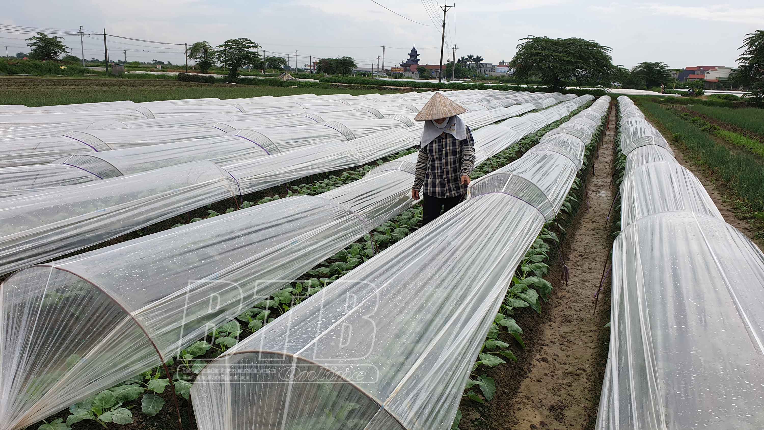 Nông dân xã Quỳnh Hải sử dụng nilon để che chắn cho cây màu. Ảnh: Nguyễn Cường