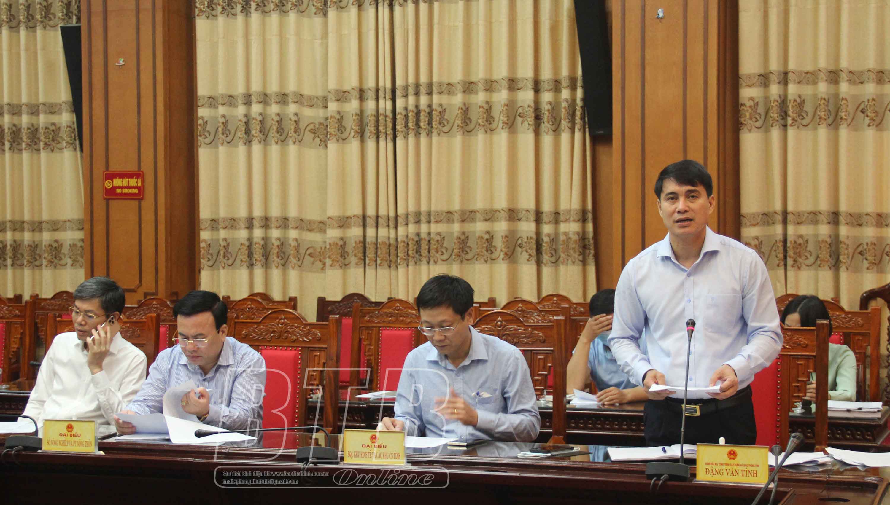 Lãnh đạo Ban Quản lý dự án đầu tư xây dựng các công trình giao thông tỉnh báo cáo tại cuộc họp.