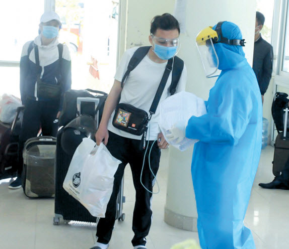 Cán bộ y tế hướng dẫn công dân chuẩn bị cho thời gian cách ly tập trung sắp tới.