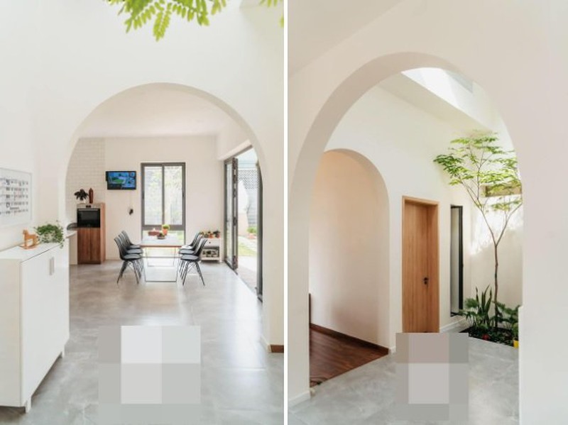 Ở bên trong ngôi nhà, các không gian được liên kết với nhau bằng hệ thống cửa vòm.
