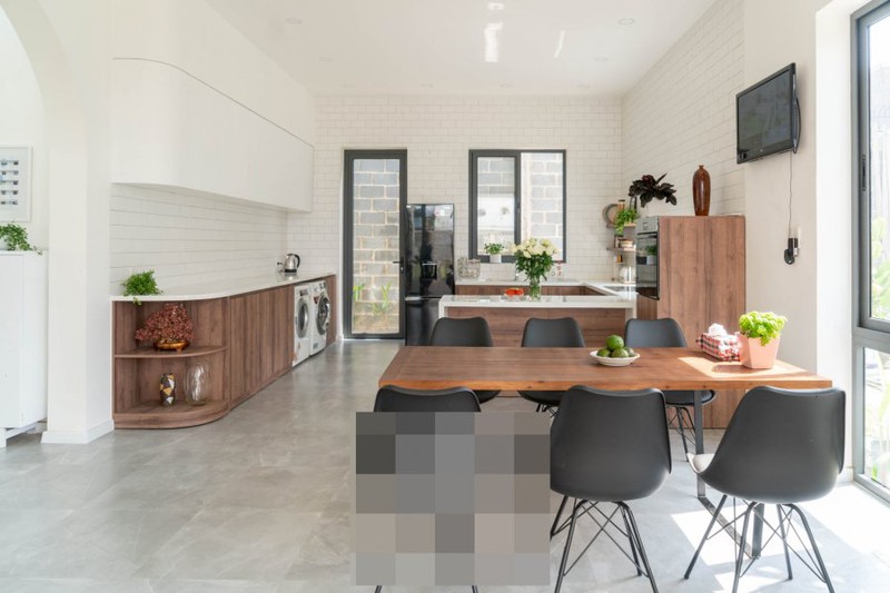 Phòng bếp và phòng ăn được thiết kế rộng rãi, bố trí hợp lý, đủ chỗ ngồi cho các thành viên trong gia đình.