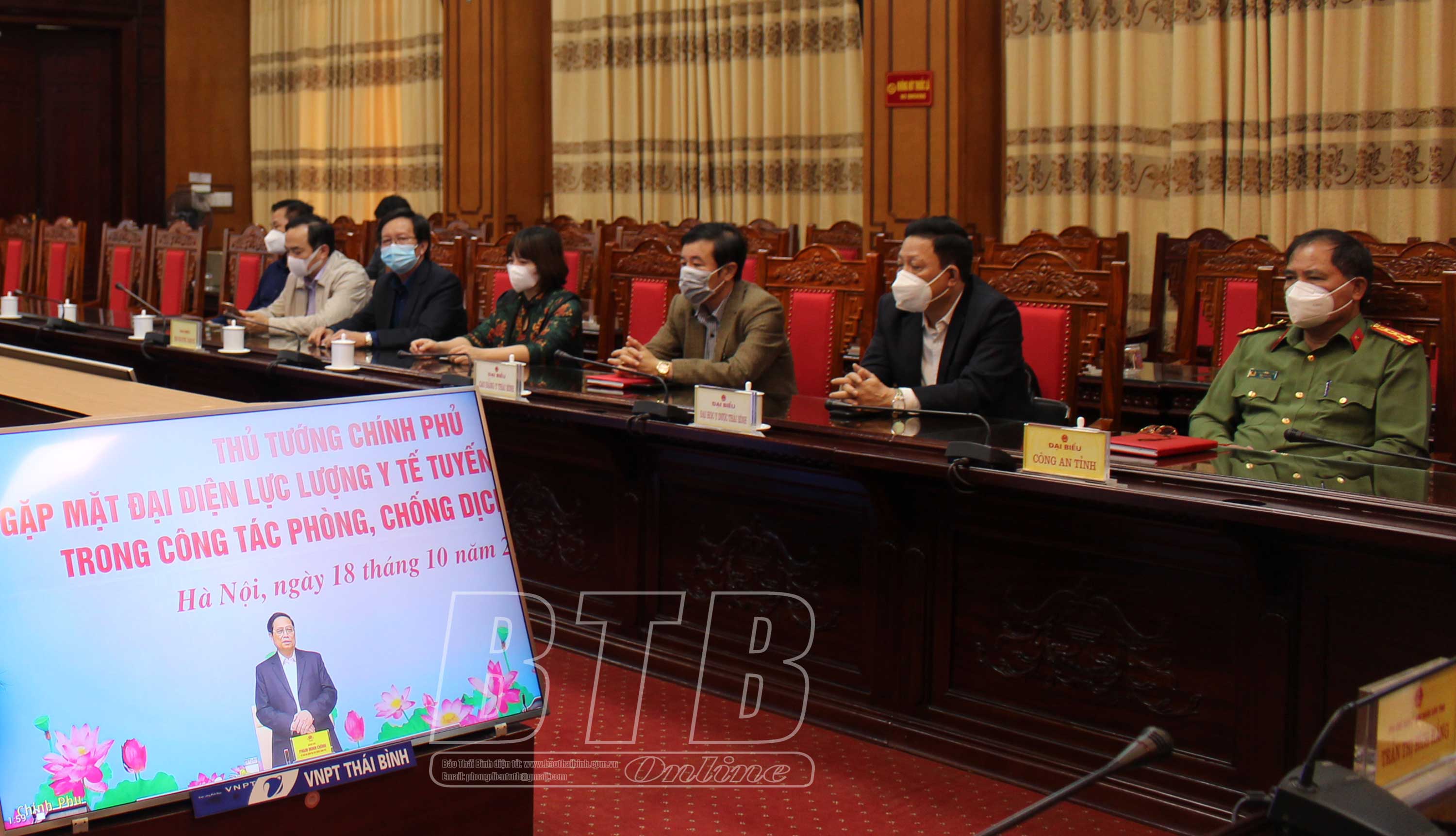 Dự buổi gặp mặt tại điểm cầu Thái Bình có đồng chí Trần Thị Bích Hằng, Tỉnh ủy viên, Phó Chủ tịch UBND tỉnh, Phó Trưởng ban thường trực Ban Chỉ đạo phòng, chống dịch Covid-19 tỉnh; lãnh đạo Sở Y tế và đại diện lực lượng y tế tuyến đầu trong công tác phòng, chống dịch Covid-19 của tỉnh.