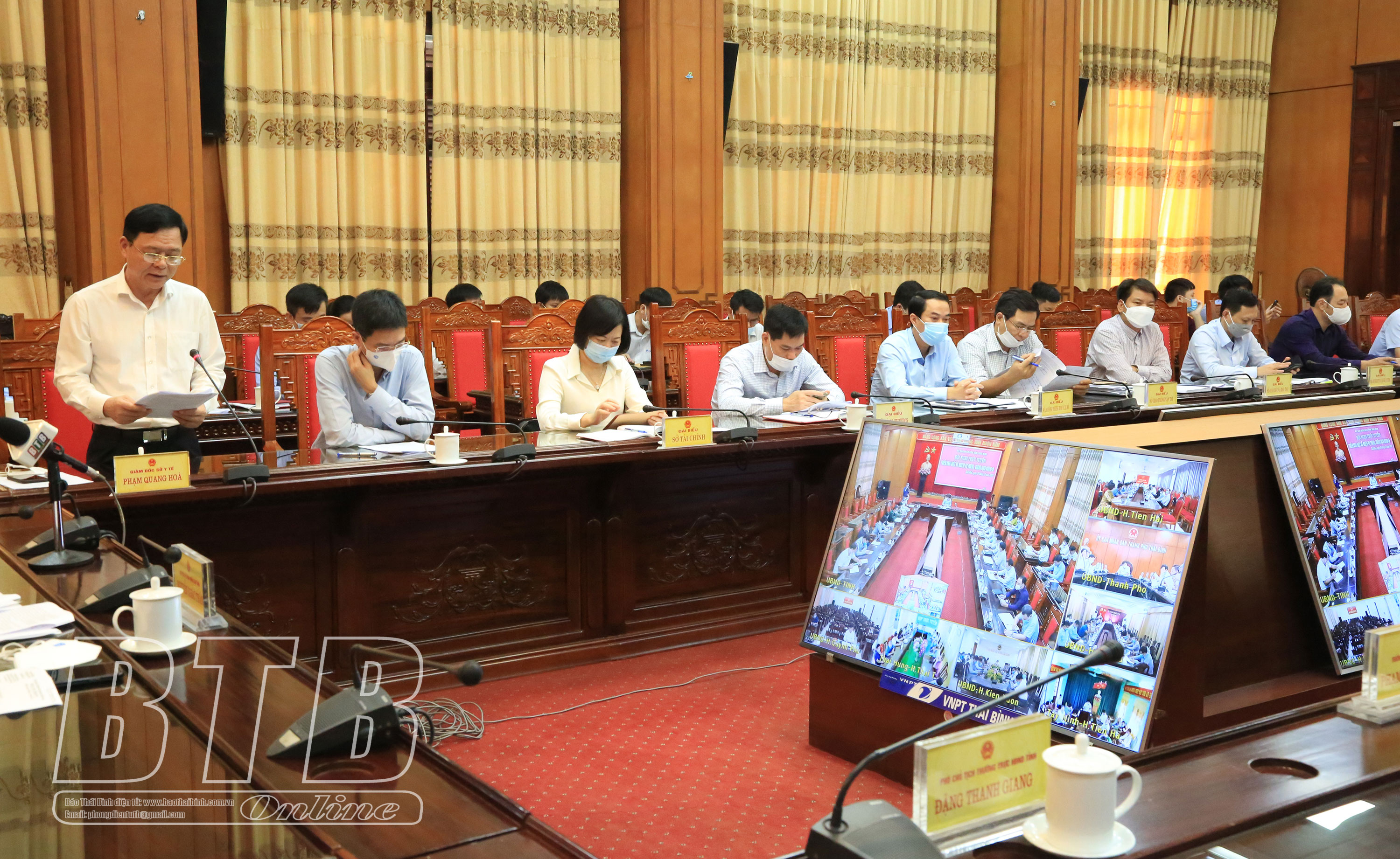 Phát biểu kết luận hội nghị, đồng chí Nguyễn Khắc Thận, Phó Bí thư Tỉnh ủy, Chủ tịch UBND tỉnh, Trưởng ban Chỉ đạo phòng, chống dịch Covid-19 tỉnh nhấn mạnh, dù đợt dịch thứ tư có nhiều diễn biến phức tạp song với sự nỗ lực, quyết tâm của các cấp, ngành, địa phương, sự chung sức, đồng lòng của nhân dân, dịch bệnh đã được kiểm soát tốt trên địa bàn tỉnh. Bước sang giai đoạn mới về phòng, chống dịch, Chính phủ đã ban hành Nghị quyết số 128/NQ-CP quy định tạm thời thích ứng an toàn, linh hoạt, kiểm soát hiệu quả dịch Covid-19; Bộ Y tế đã có Quyết định số 4800/QĐ-BYT. Ngay sau khi có các văn bản của Trung ương, Thái Bình đã chủ động, kịp thời ban hành các văn bản; triển khai thực hiện nhiều hoạt động để thích ứng an toàn, linh hoạt, kiểm soát hiệu quả dịch Covid-19.