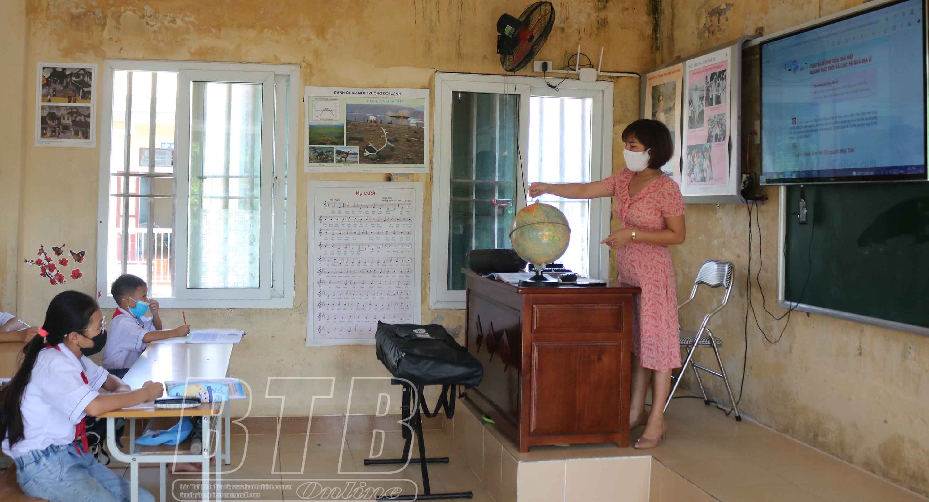 Học sinh Trường Tiểu học và THCS Thụy Hồng (Thái Thụy) học môn Địa lý tại phòng học thông minh của nhà trường.