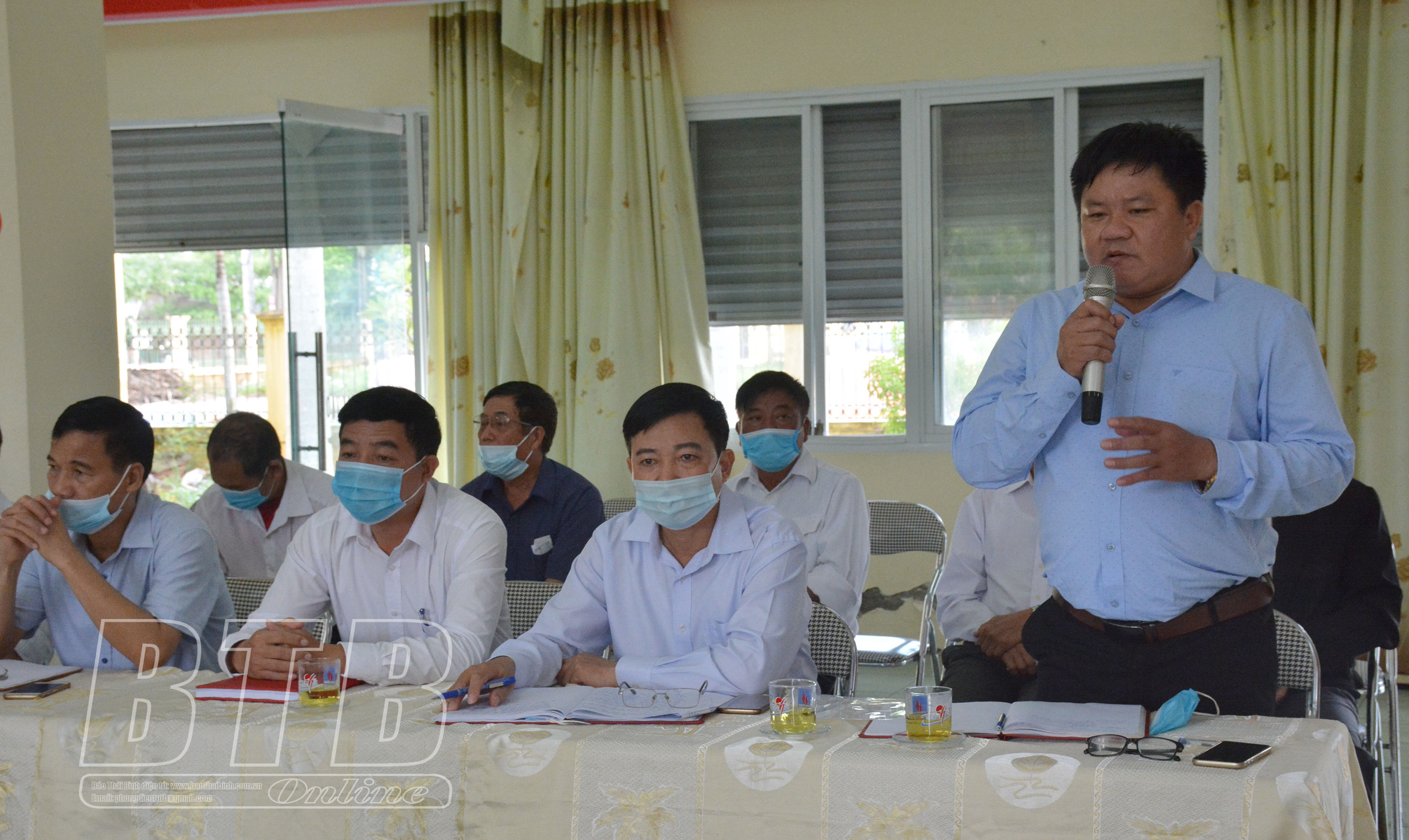 Lãnh đạo xã Bình Định phát biểu tại buổi khảo sát.