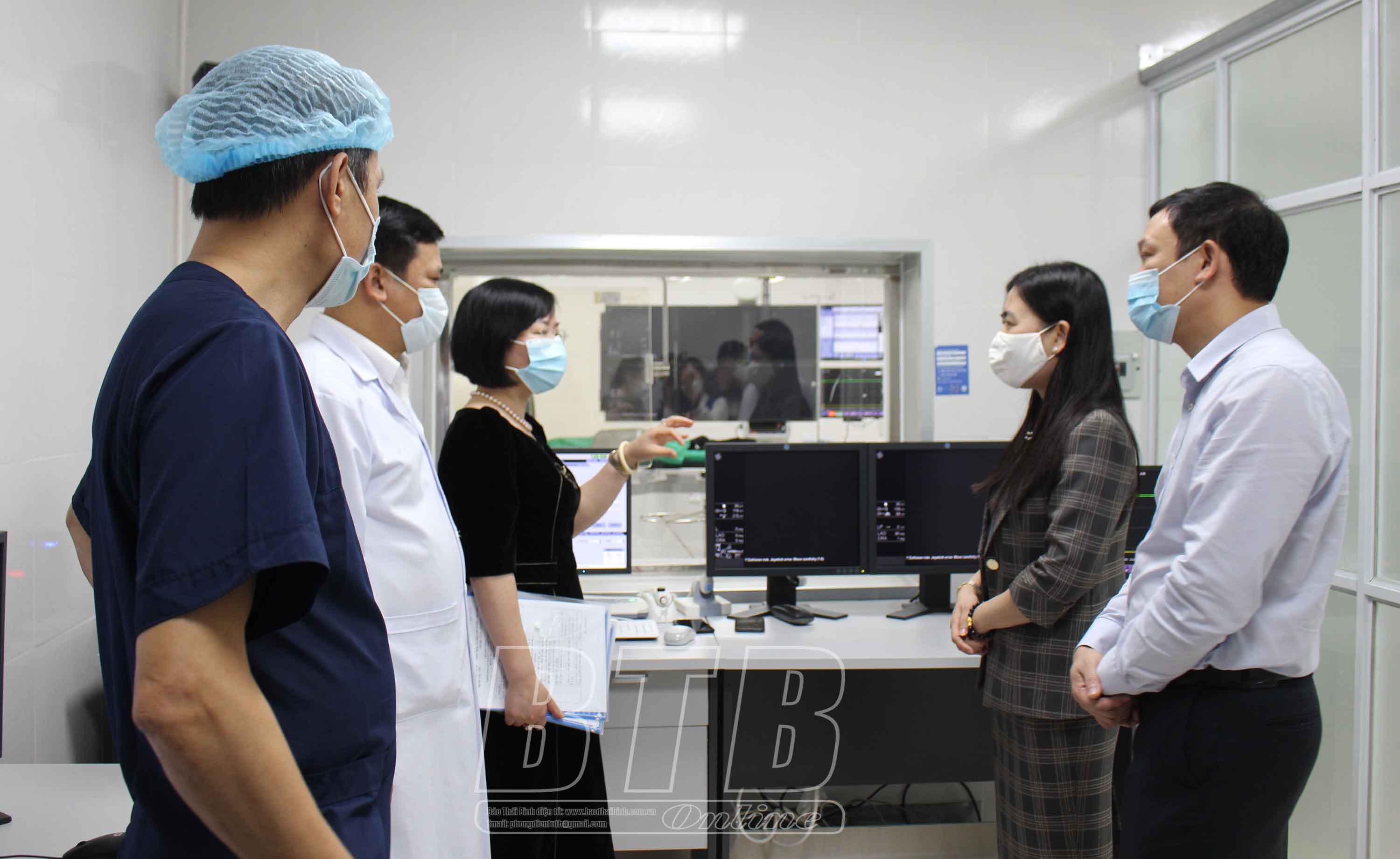 Đồng chí Trần Thị Bích Hằng, Tỉnh ủy viên, Phó Chủ tịch UBND tỉnh tham quan khu vực thực hiện kỹ thuật can thiệp tim mạch tại Bệnh viện Nhi Thái Bình.