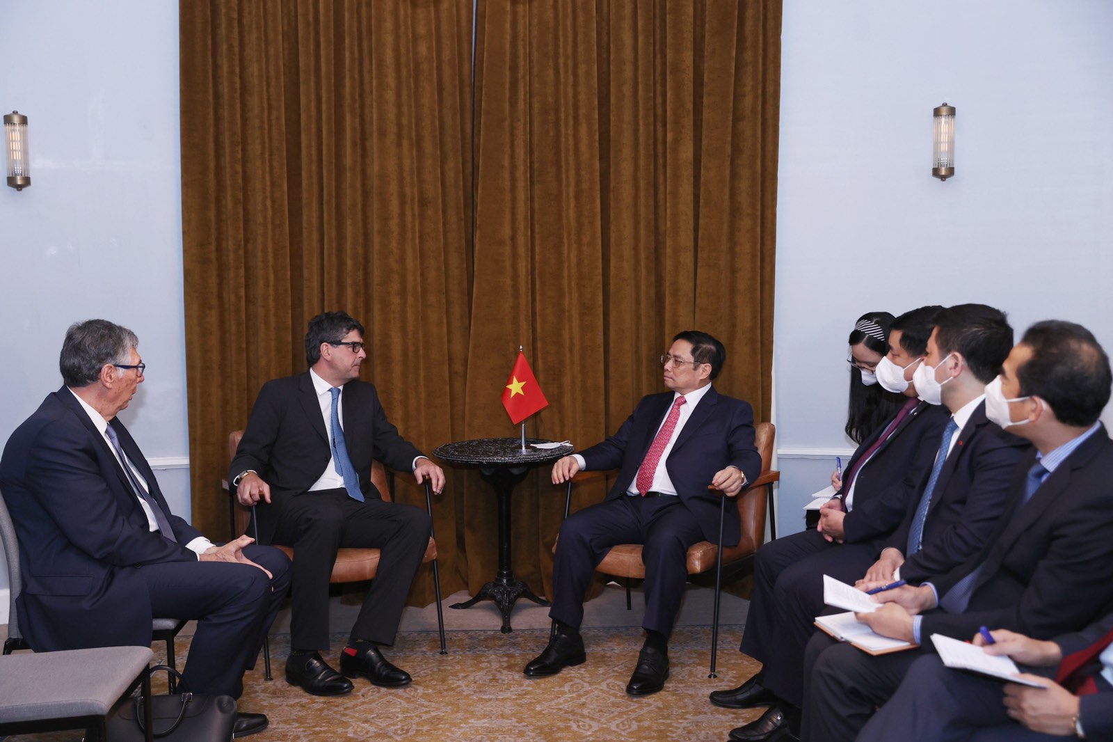 Ngày 31/10, tại thành phố Edinburgh, Scotland, Vương quốc Liên hiệp Anh và Bắc Ireland, nhân chuyến tham dự Hội nghị COP26 và thăm làm việc tại Anh, Thủ tướng Phạm Minh Chính đã tiếp lãnh đạo một số doanh nghiệp, trường đại học lớn của Anh.