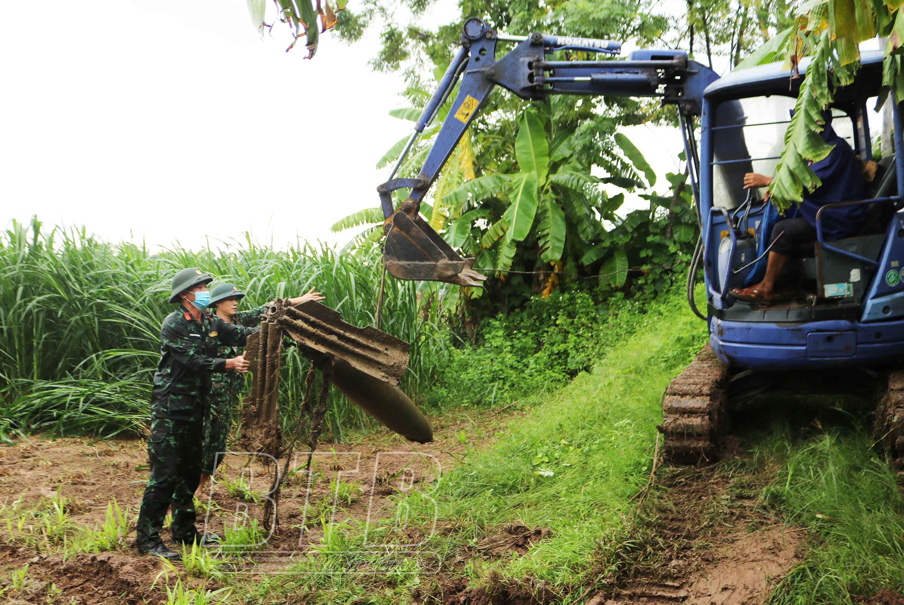 Cán bộ, nhân viên Ban Công binh, Phòng Tham mưu, Bộ CHQS tỉnh phát hiện, di dời bom còn sót lại sau chiến tranh.