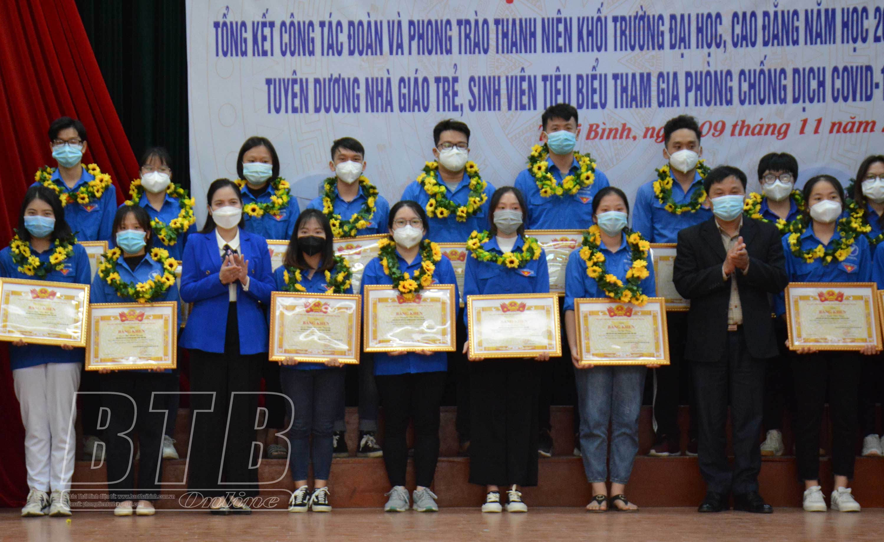 Năm học 2020-2021, đoàn thanh niên khối trường đại học, cao đẳng tiếp tục làm tốt công tác tuyên truyền, giáo dục chính trị, tư tưởng cho đoàn viên, thanh niên; triển khai hiệu quả các phong trào “Sinh viên 5 tốt”, “Học sinh 3 rèn luyện”, hỗ trợ học sinh, sinh viên nghèo vượt khó, có thành tích học tập tốt. Đặc biệt, phong trào thanh niên tình nguyện đã được đoàn thanh niên các trường tổ chức linh hoạt, sáng tạo, thích ứng với tình hình dịch Covid-19. Trong năm 2021, đã có 27 cán bộ, 635 sinh viên Trường Đại học Y Dược Thái Bình, 8 cán bộ Trường Cao đẳng Y tế Thái Bình tham gia phòng, chống dịch Covid-19 tại các tỉnh, thành phố. Ngoài ra, đoàn viên, sinh viên các trường đại học, cao đẳng còn tích cực tham gia các đội hình phản ứng nhanh hỗ trợ công tác phòng, chống dịch Covid-19, chăm lo cho người yếu thế, kêu gọi vận động nguồn lực, phân phối hàng hóa, nhu yếu phẩm, hỗ trợ sản xuất dụng cụ phòng, chống dịch…