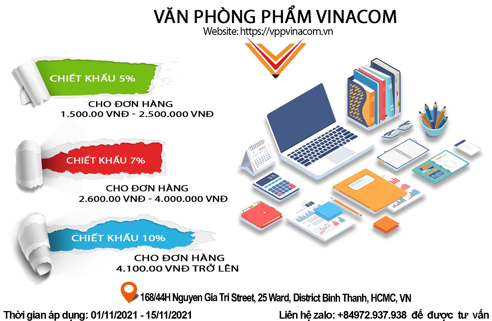 Ngoài ra, tại Vpp Vinacom quý khách sẽ dễ dàng tiếp cận được những đợt chiết khấu văn phòng phẩm theo mỗi đợt khuyến mãi khác nhau như: