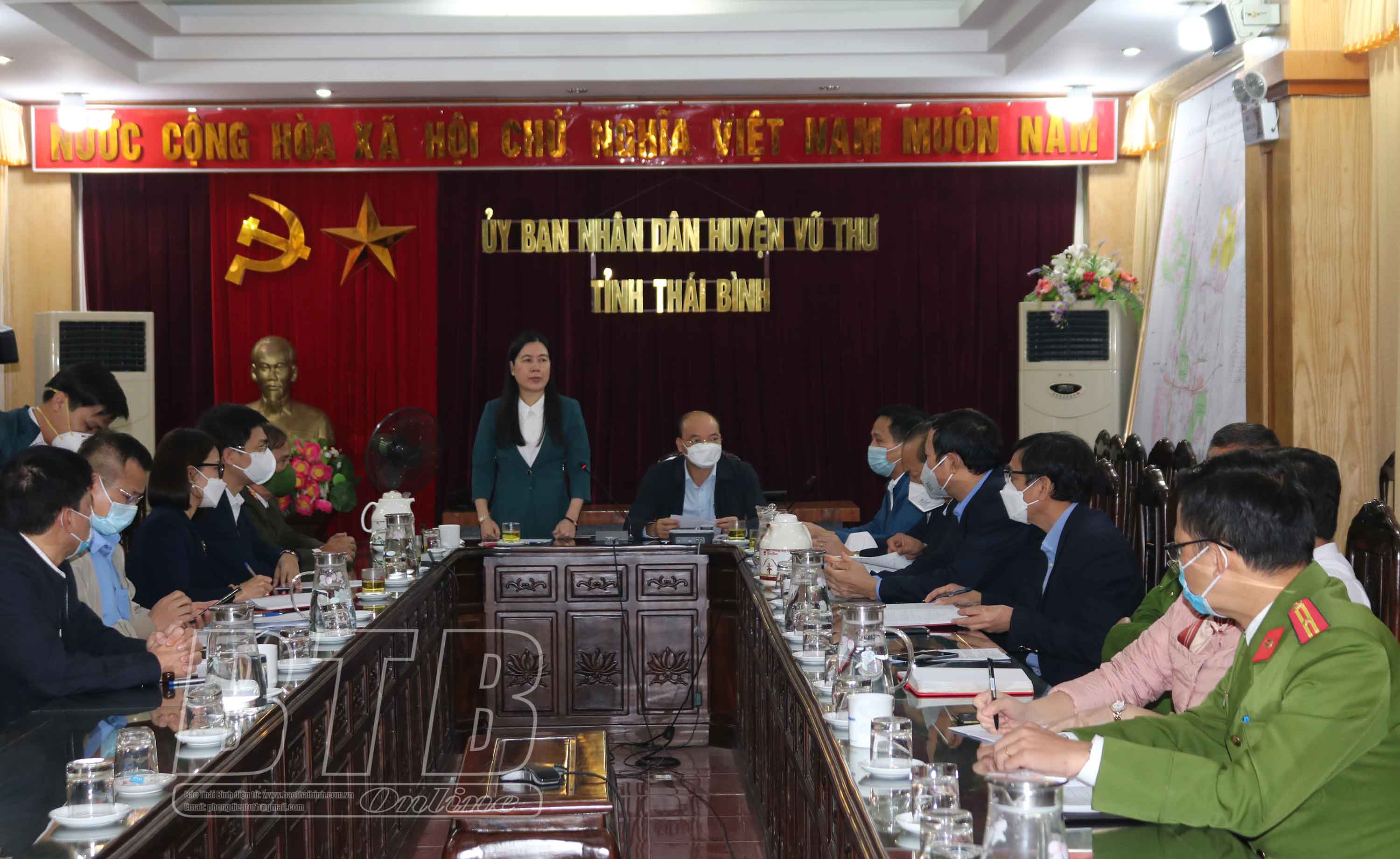 Sáng ngày 11/11, các đồng chí: Đặng Thanh Giang, Ủy viên Ban Thường vụ Tỉnh ủy, Phó Chủ tịch thường trực HĐND tỉnh; Trần Thị Bích Hằng, Tỉnh ủy viên, Phó Chủ tịch UBND tỉnh, Phó Trưởng ban thường trực Ban Chỉ đạo phòng, chống dịch Covid-19 tỉnh kiểm tra, chỉ đạo công tác phòng, chống dịch tại huyện Vũ Thư. Cùng đi có lãnh đạo Sở Y tế và Công an tỉnh.