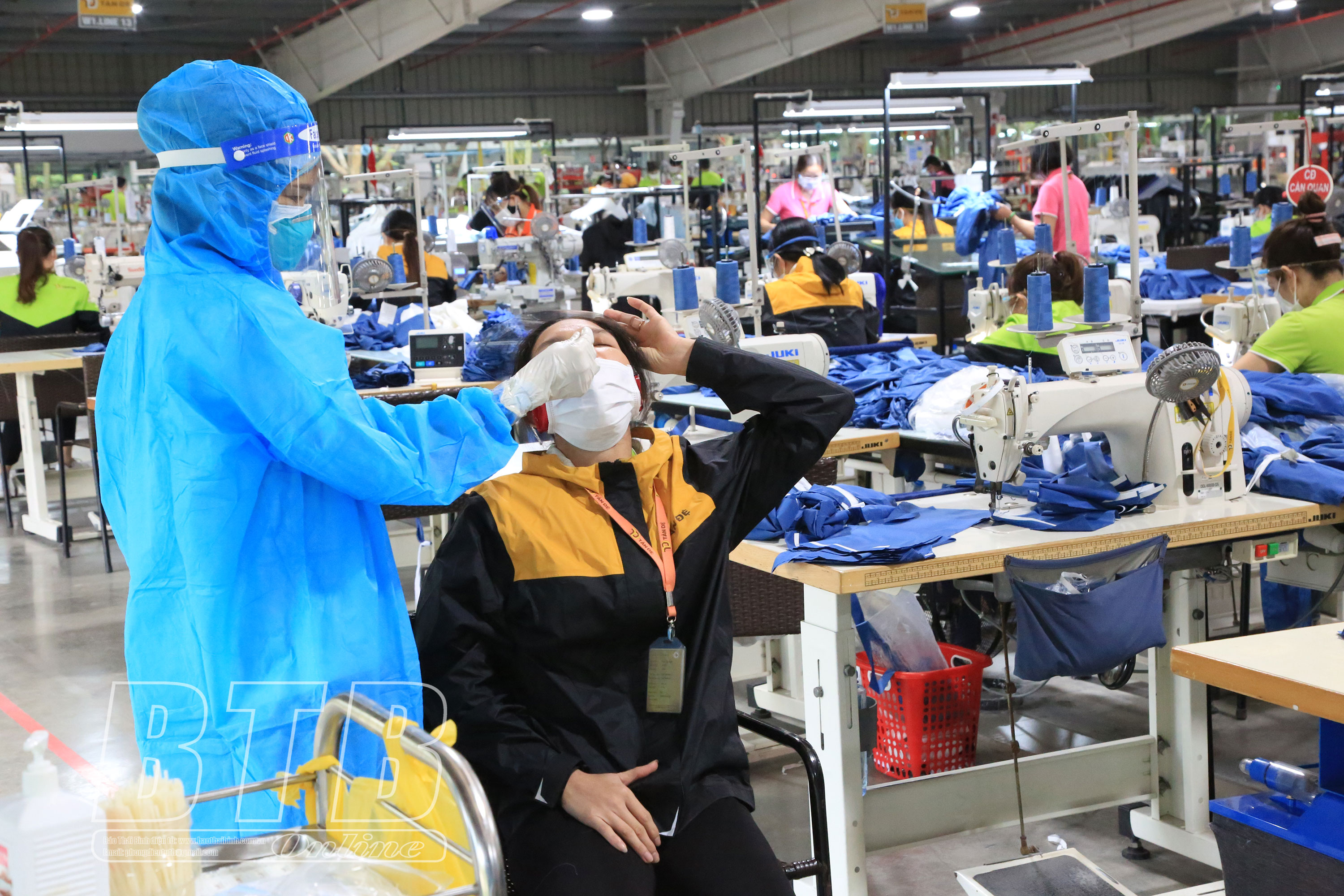 Nhà máy Tân Đệ 1, Công ty Tân Đệ lấy mẫu xét nghiệm cho công nhân.