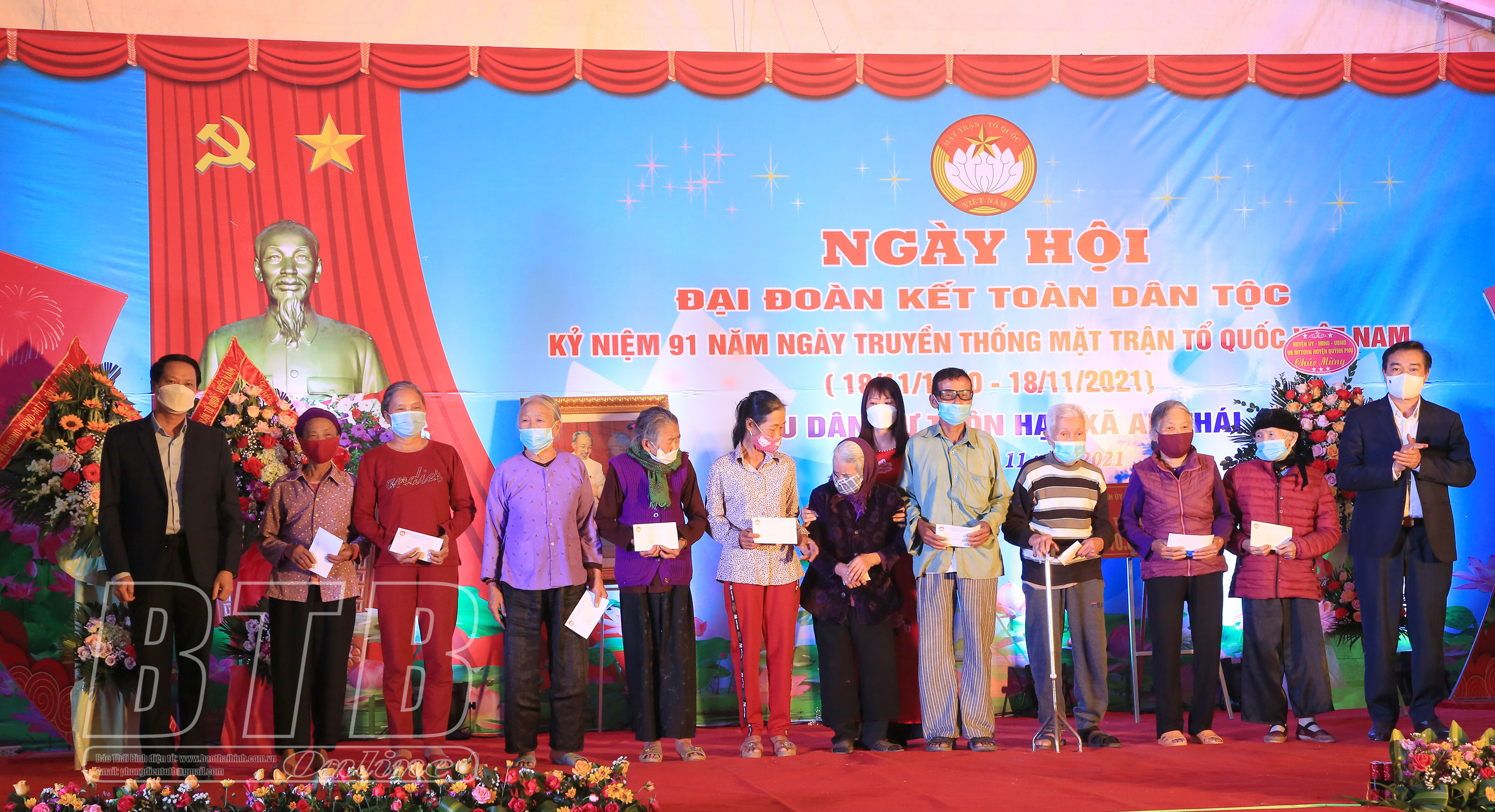Tại ngày hội, đồng chí Bí thư Tỉnh uỷ, đồng chí lãnh đạo Ủy ban Trung ương MTTQ Vệt Nam đã trao tặng quà của Trung ương và quà của tỉnh cho khu dân cư thôn Hạ và các gia đình chính sách, các gia đình có hoàn cảnh khó khăn.