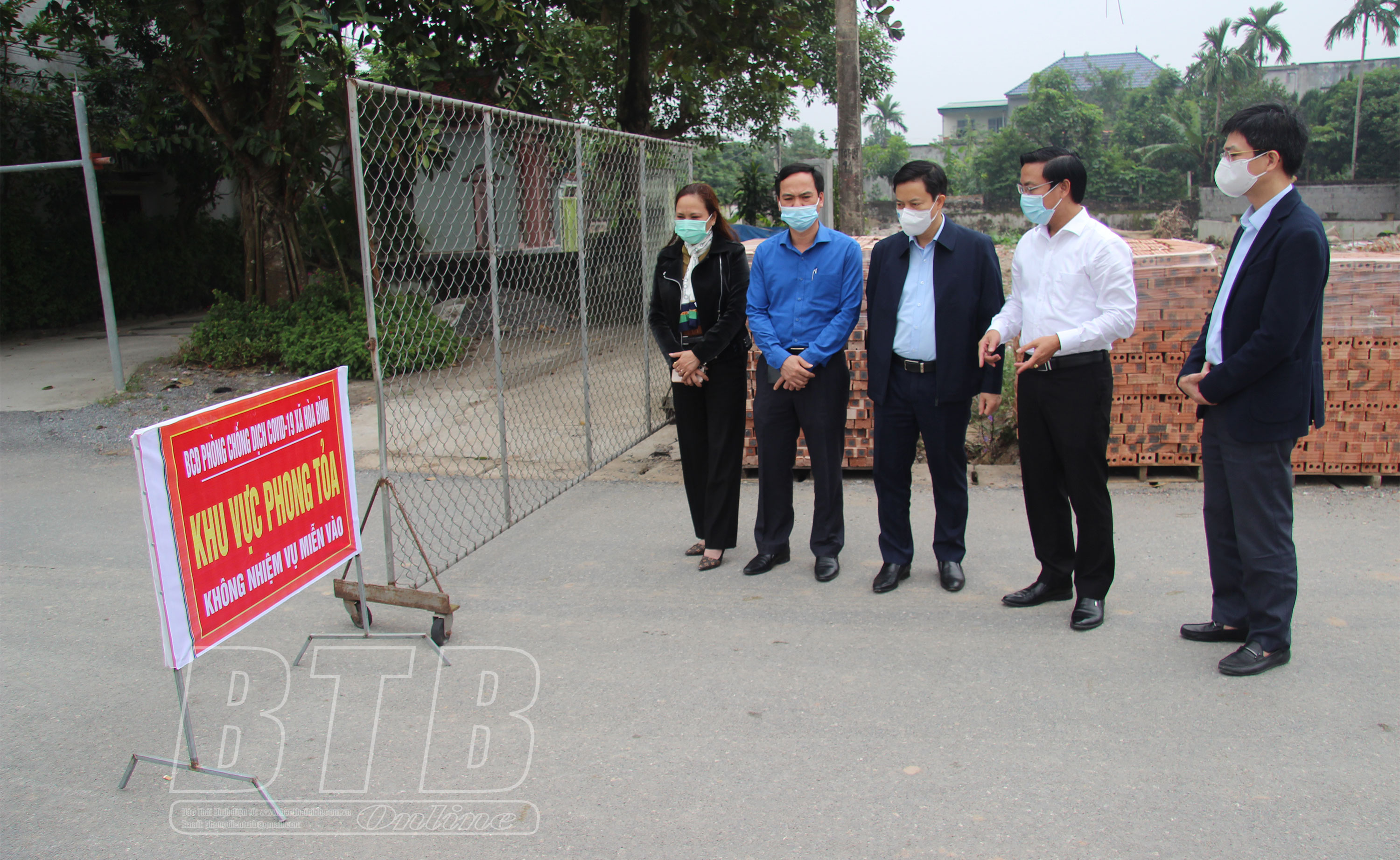 Đồng chí Lại Văn Hoàn, Tỉnh ủy viên, Phó Chủ tịch UBND tỉnh, Phó Trưởng ban Chỉ đạo phòng, chống dịch Covid-19 tỉnh kiểm tra công tác phòng, chống dịch tại xã Hòa Bình, Kiến Xương.