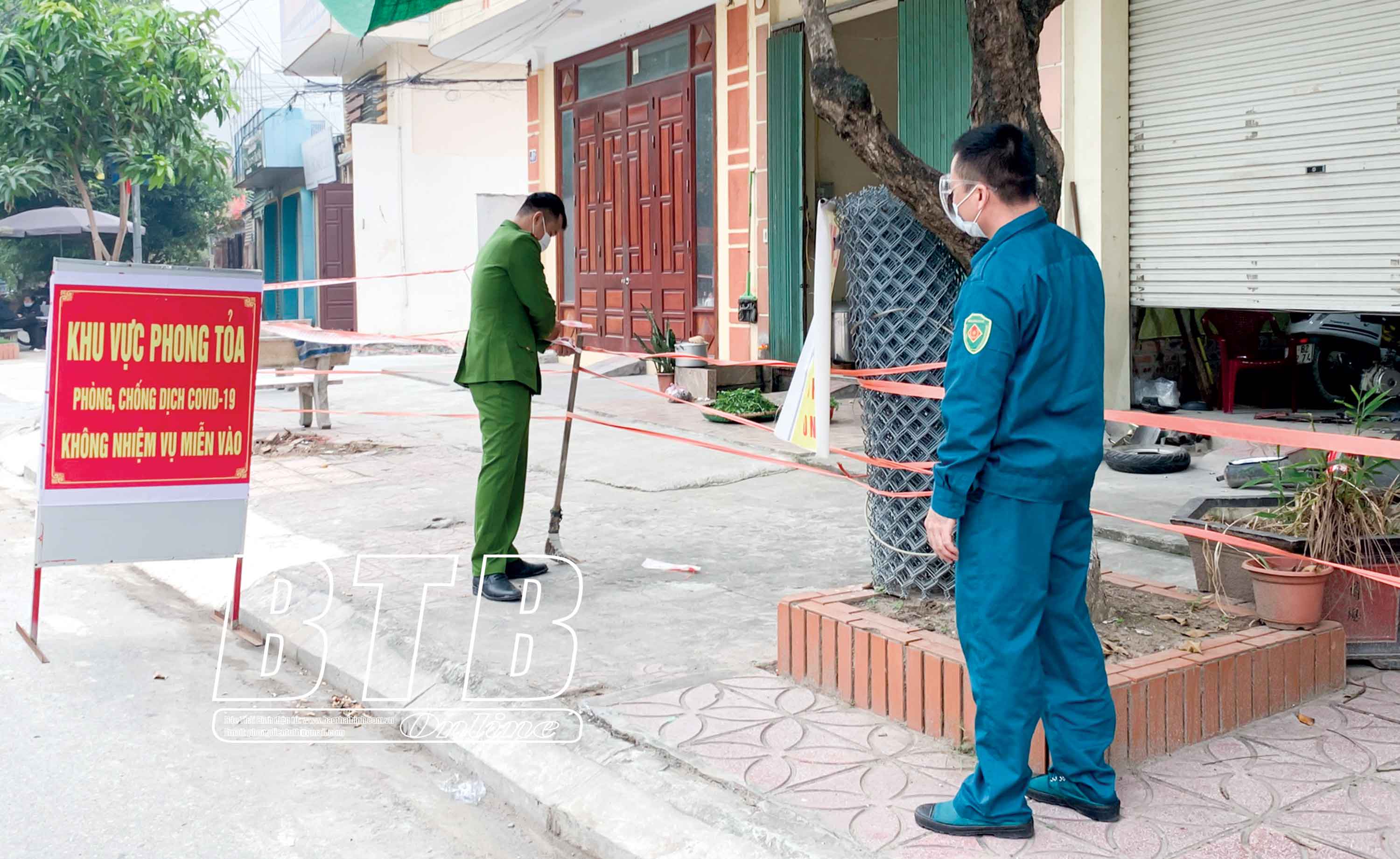 Lực lượng chức năng phường Trần Lãm (thành phố Thái Bình) phong tỏa khu vực có người nhiễm Covid-19.