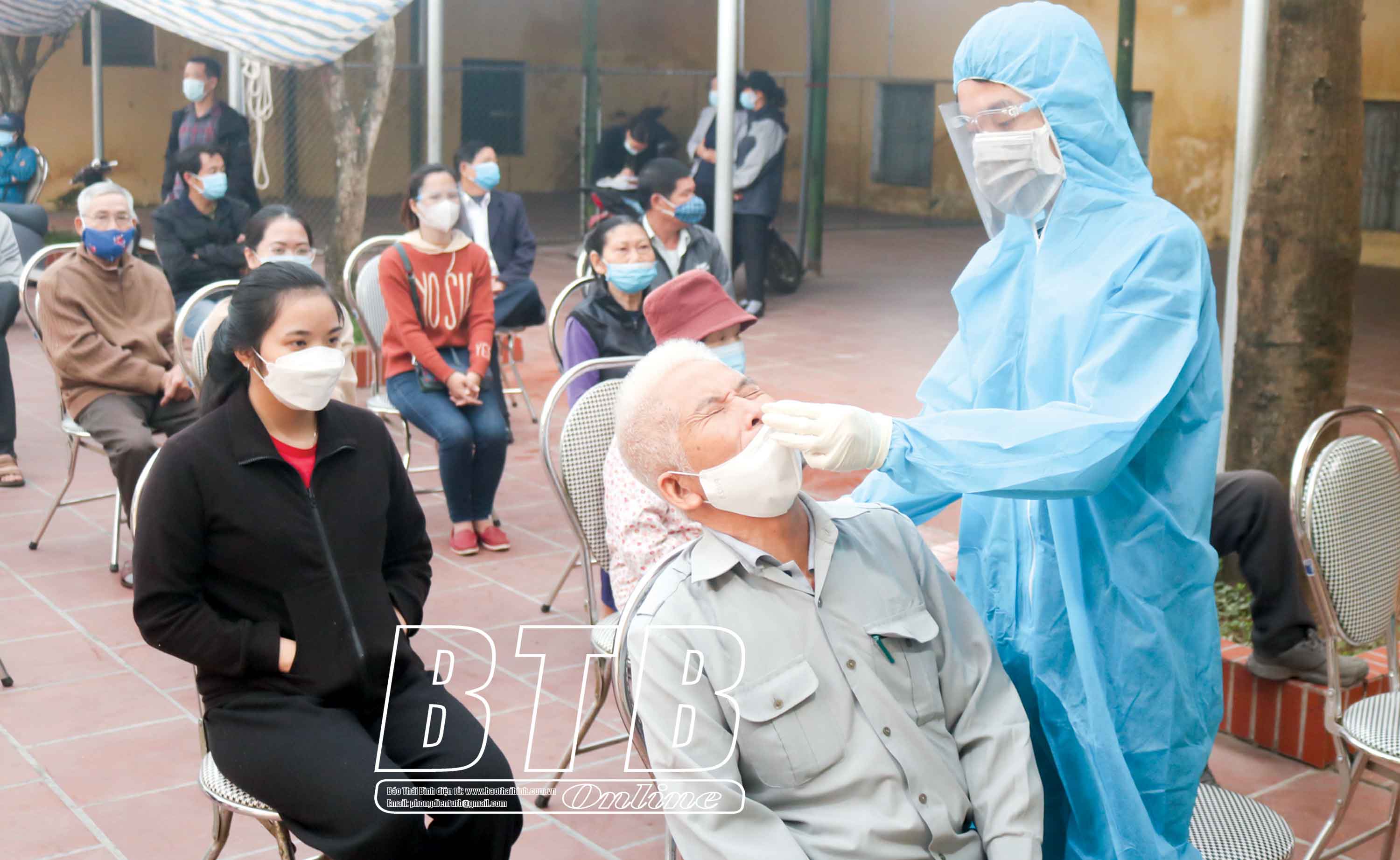 Người dân xã Đông Hòa (thành phố Thái Bình) được lấy mẫu xét nghiệm sàng lọc SARS-CoV-2.