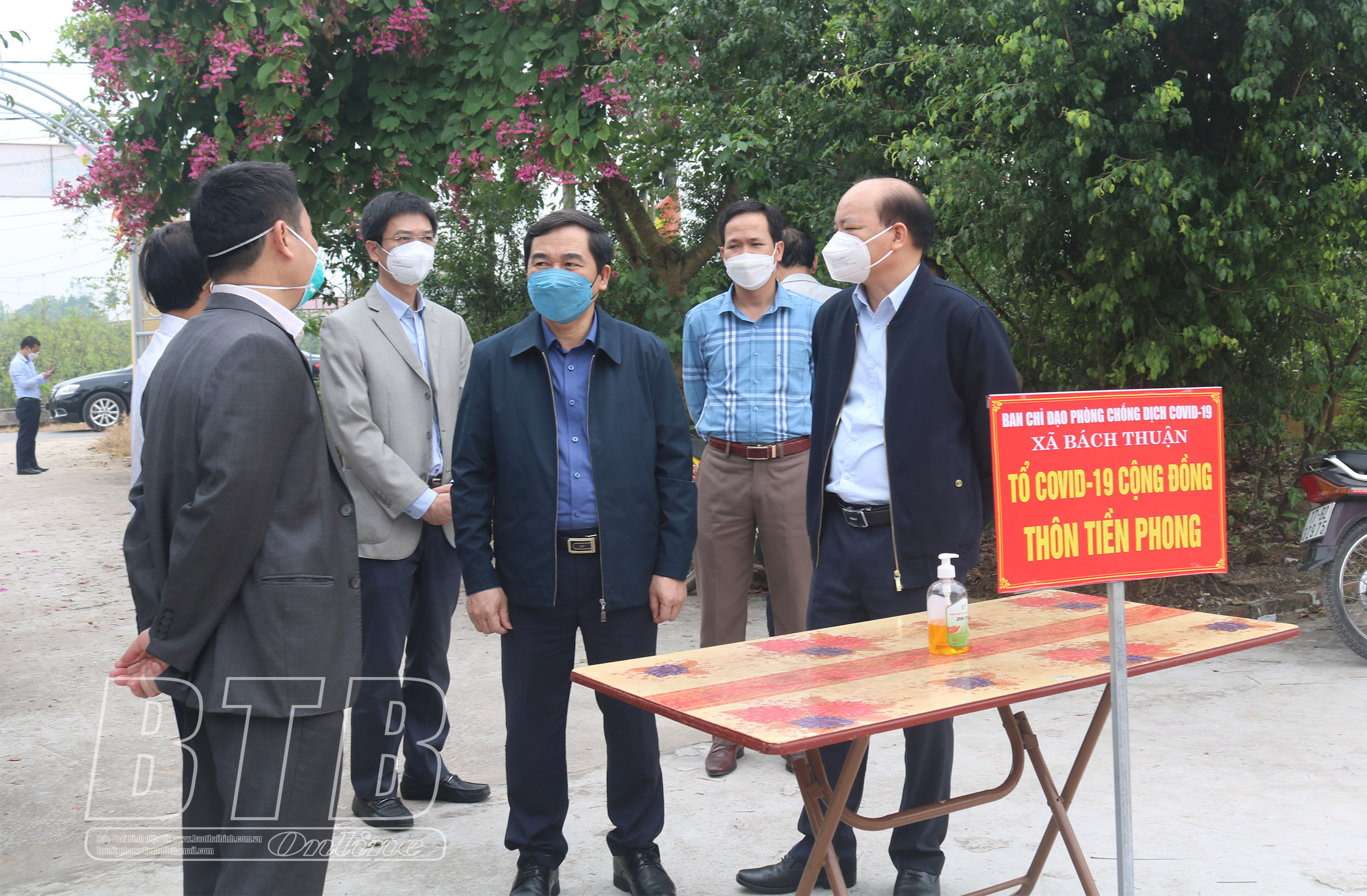 Đồng chí Nguyễn Tiến Thành, Phó Bí thư thường trực Tỉnh ủy, Chủ tịch HĐND tỉnh kiểm tra công tác phòng, chống dịch Covid-19 tại thôn Tiền Phong, xã Bách Thuận, huyện Vũ Thư.