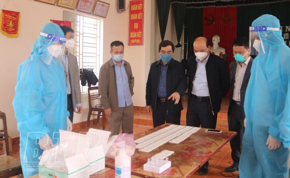 Đồng chí Nguyễn Tiến Thành, Phó Bí thư thường trực Tỉnh ủy, Chủ tịch HĐND tỉnh kiểm tra việc tổ chức lấy mẫu xét nghiệm nhanh Covid-19 tại thôn Tiền Phong, xã Bách Thuận, huyện Vũ Thư.