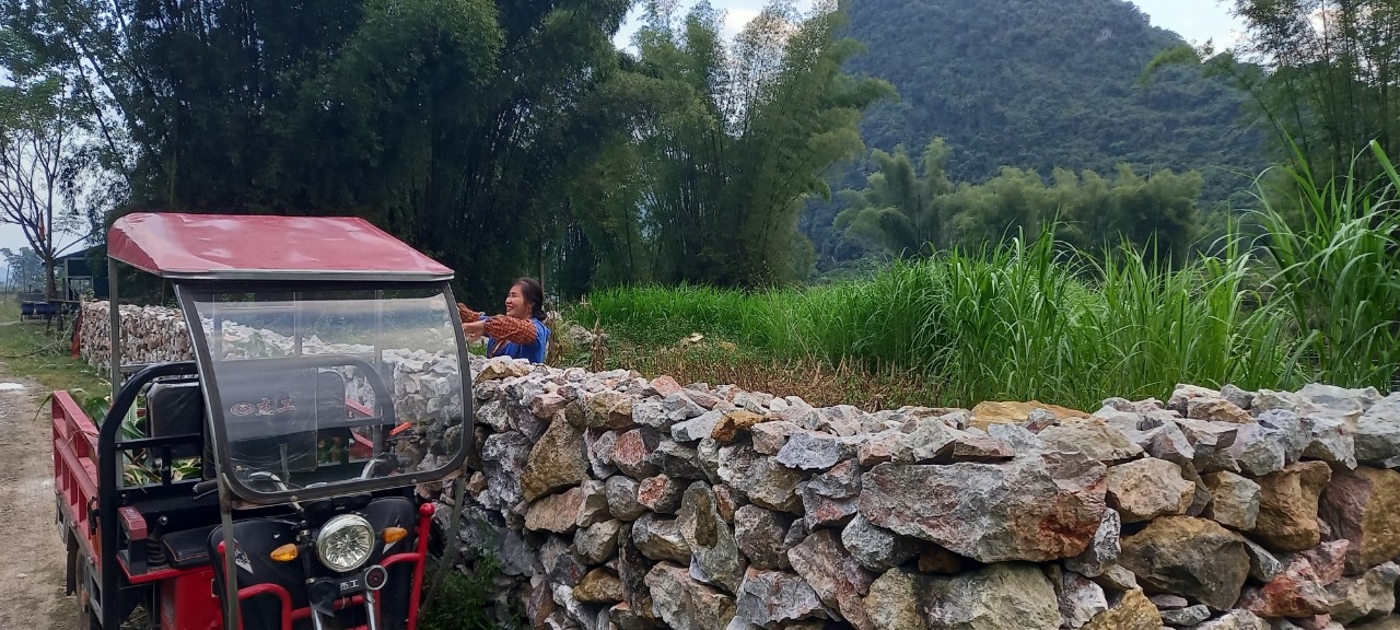 Chị Triệu Thị Át, xóm Bản Giốc, xã Đàm Thủy, huyện Trùng Khánh cắt cỏ voi về chăn nuôi bò
