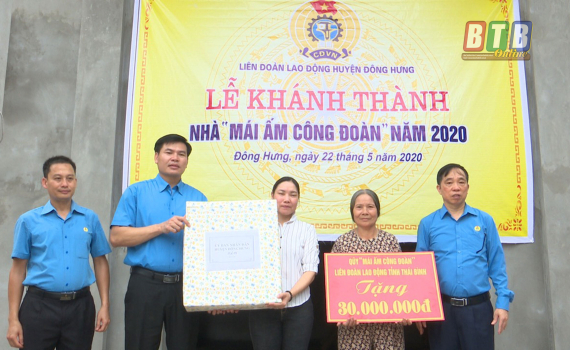 Nhân tháng công nhân năm 2020, Liên đoàn Lao động huyện Đông Hưng đã tổ chức trao tặng 210 suất quà cho công nhân có hoàn cảnh khó khăn của một số doanh nghiệp trên địa bàn và trao kinh phí hỗ trợ xây dựng mái ấm công đoàn cho 4 đơn vị có đoàn viên khó khăn về nhà ở với số tiền 30 triệu đồng/nhà.