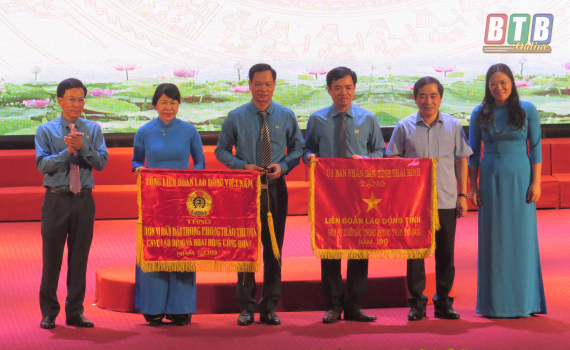 Liên đoàn Lao động tỉnh nhận cờ thi đua của Tổng Liên đoàn Lao động Việt Nam, UBND tỉnh.