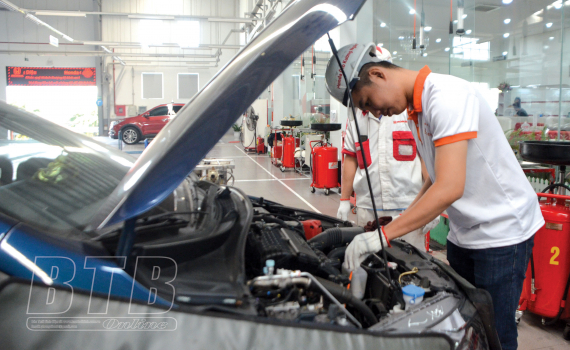 Sinh viên Trường Cao đẳng Nghề Thái Bình thực hành sửa chữa ô tô.