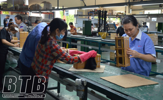 Công nhân Công ty TNHH Quốc tế Molatec, khu công nghiệp Phúc Khánh tích cực thi đua lao động sản xuất.