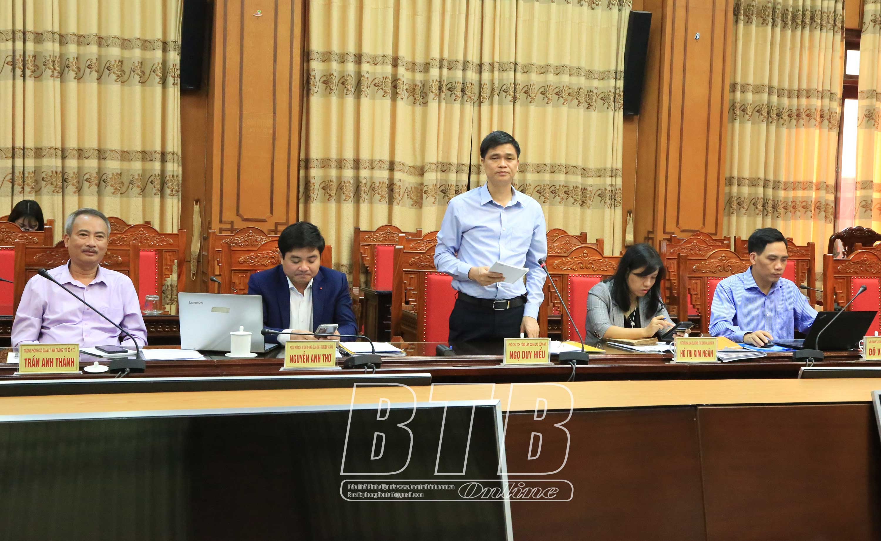 Đồng chí Ngọ Duy Hiểu, Phó Chủ tịch Tổng Liên đoàn Lao động Việt Nam đề nghị tỉnh Thái Bình sớm hoàn thiện báo cáo theo góp ý của Đoàn giám sát. Rà soát, cập nhật hệ thống văn bản mới về các chính sách, pháp luật trong khai thác tài nguyên, bảo vệ môi trường, ứng phó với biến đổi khí hậu và an toàn, vệ sinh lao động. Đồng chí mong tỉnh Thái Bình quan tâm hơn nữa đến những lĩnh vực trên, nâng cao chất lượng tham mưu của các sở, ngành chuyên môn, đặc biệt tăng cường đôn đốc, kiểm tra, giám sát, xử lý nghiêm những tổ chức, cá nhân vi phạm.