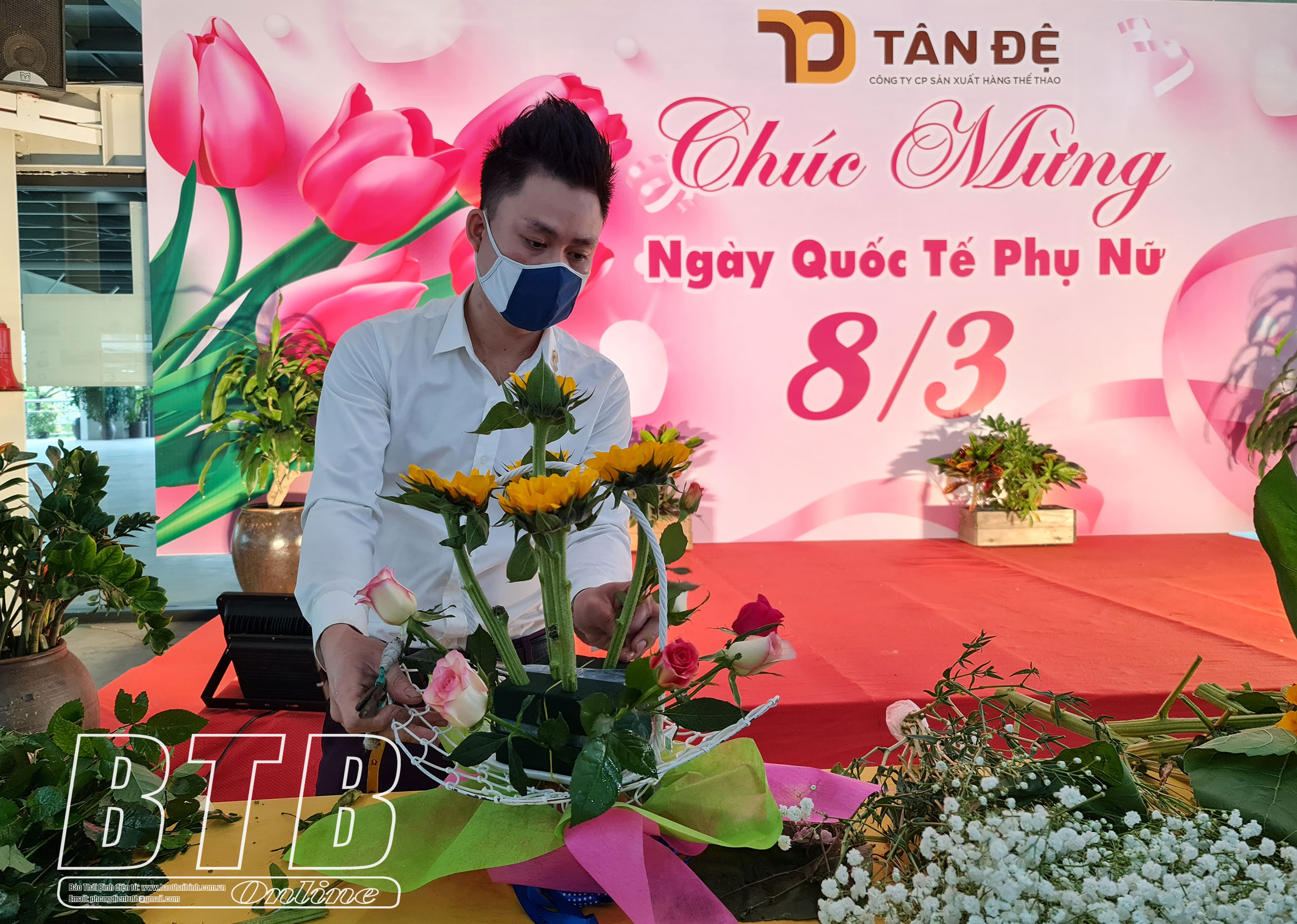 Sáng ngày 4/3, hàng trăm cán bộ, người lao động của Công ty Tân Đệ cùng tham gia cuộc thi cắm hoa đẹp tặng chị em phụ nữ đang làm việc ở 7 nhà máy trên địa bàn tỉnh. Những giỏ hoa xinh đến tay các chị em công nhân được tạo nên bởi đôi bàn tay khéo léo của người lao động và phần lớn hoa, lá được hái từ các vườn cây hoa cảnh của Công ty, ai cũng phấn khởi, vui mừng.