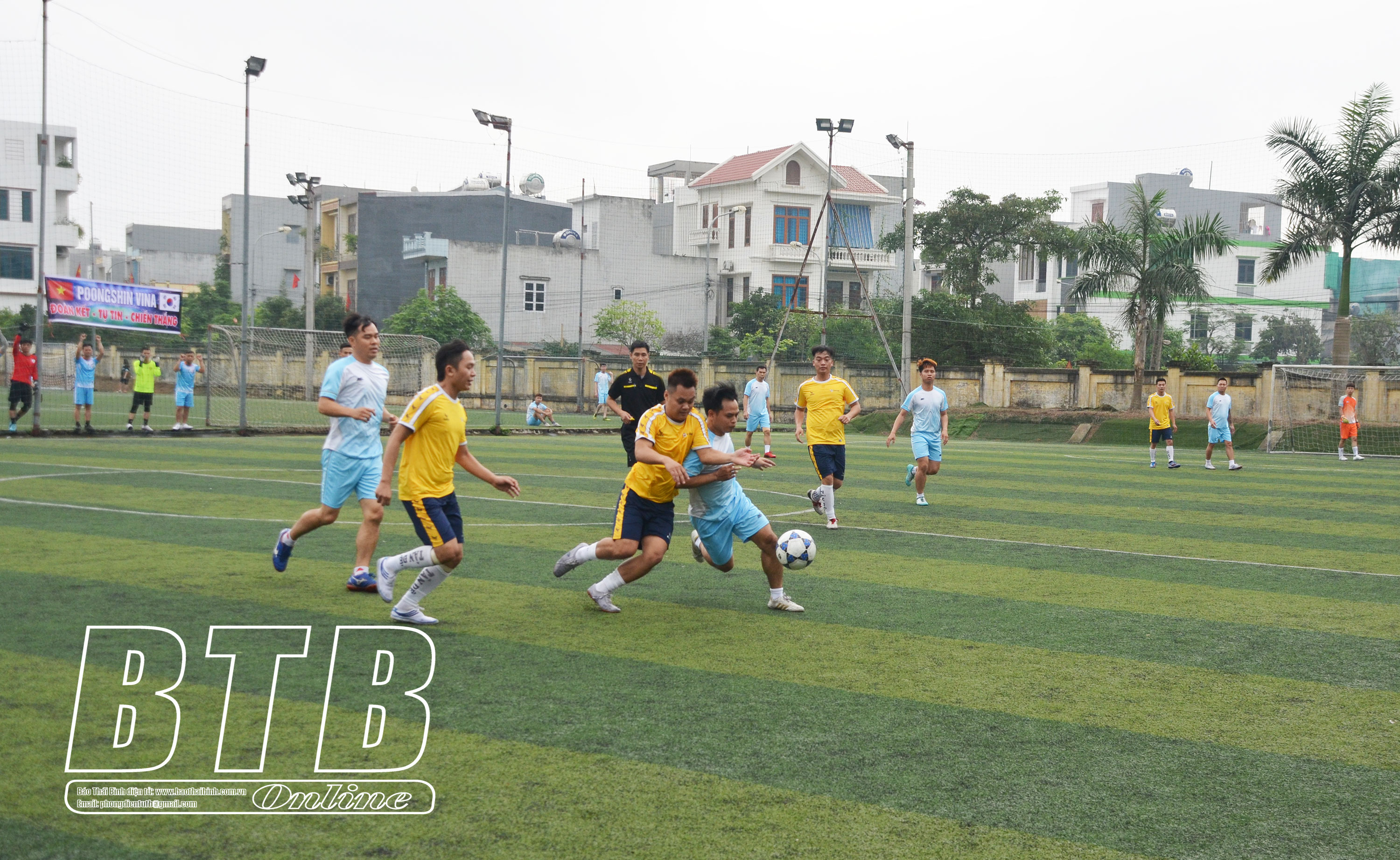 Trận đấu giữa Công ty Tân Đệ và Công ty TNHH Poong Shin Vina diễn ra sôi nổi, hấp dẫn.