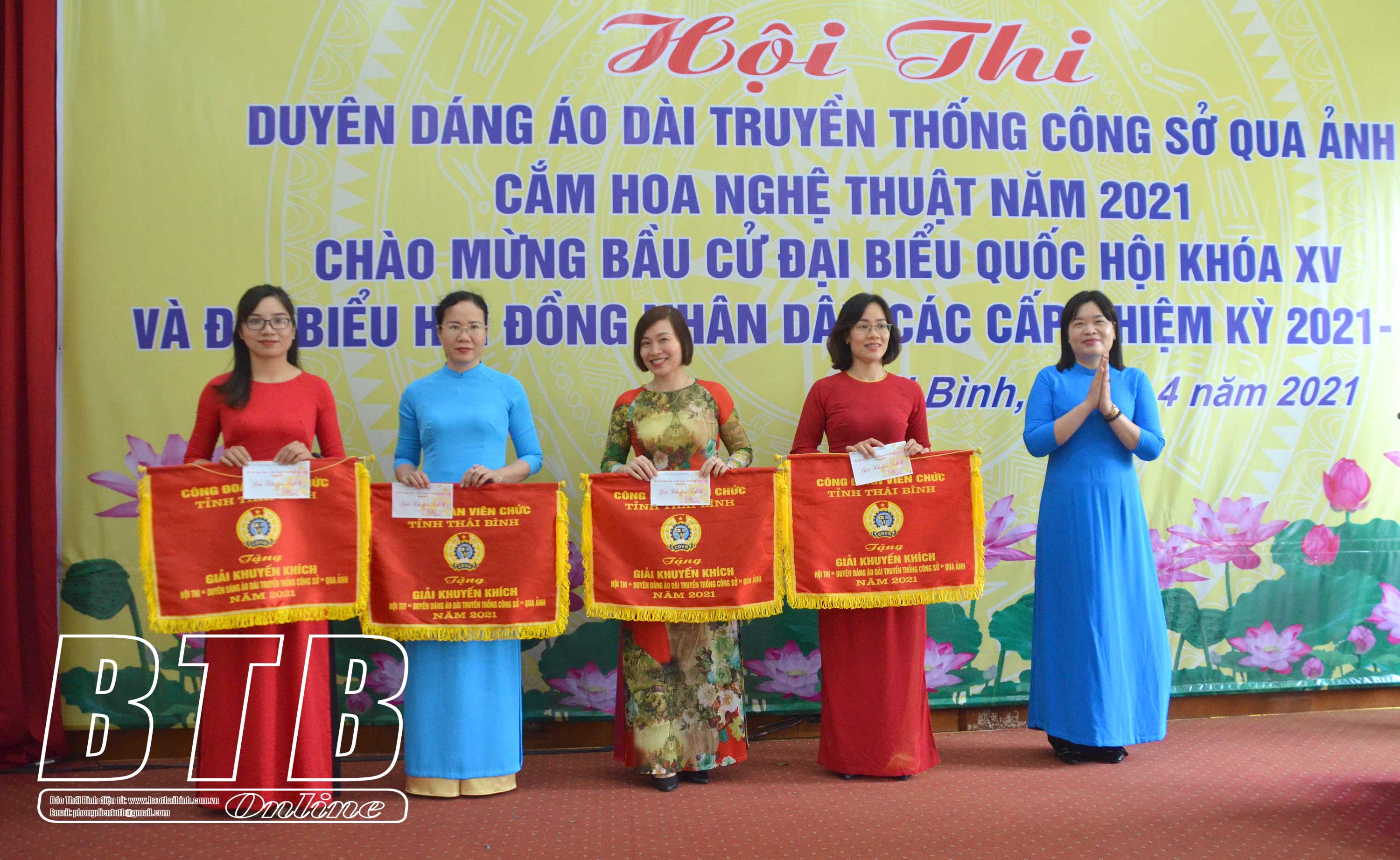 Với chủ đề “Nét đẹp phụ nữ Việt”, 43 công đoàn cơ sở và công đoàn cơ sở thành viên đã mang tới hội thi 84 bức ảnh được đầu tư công phu, khéo léo cả việc lựa chọn trang phục, bố cục tạo được nét duyên dáng của nữ đoàn viên, CNVCLĐ Thái Bình trong tà áo dài truyền thống. Riêng phần thi cắm hoa nghệ thuật diễn ra trong không khí vô cùng hào hứng, sôi nổi. 69 thành viên của 23 công đoàn cơ sở đã thể hiện được tài năng, ý tưởng sáng tạo và tinh thần đoàn kết trong suốt hội thi. Kết thúc hội thi, các tác phẩm đạt chất lượng cao được ban tổ chức trao giải.
