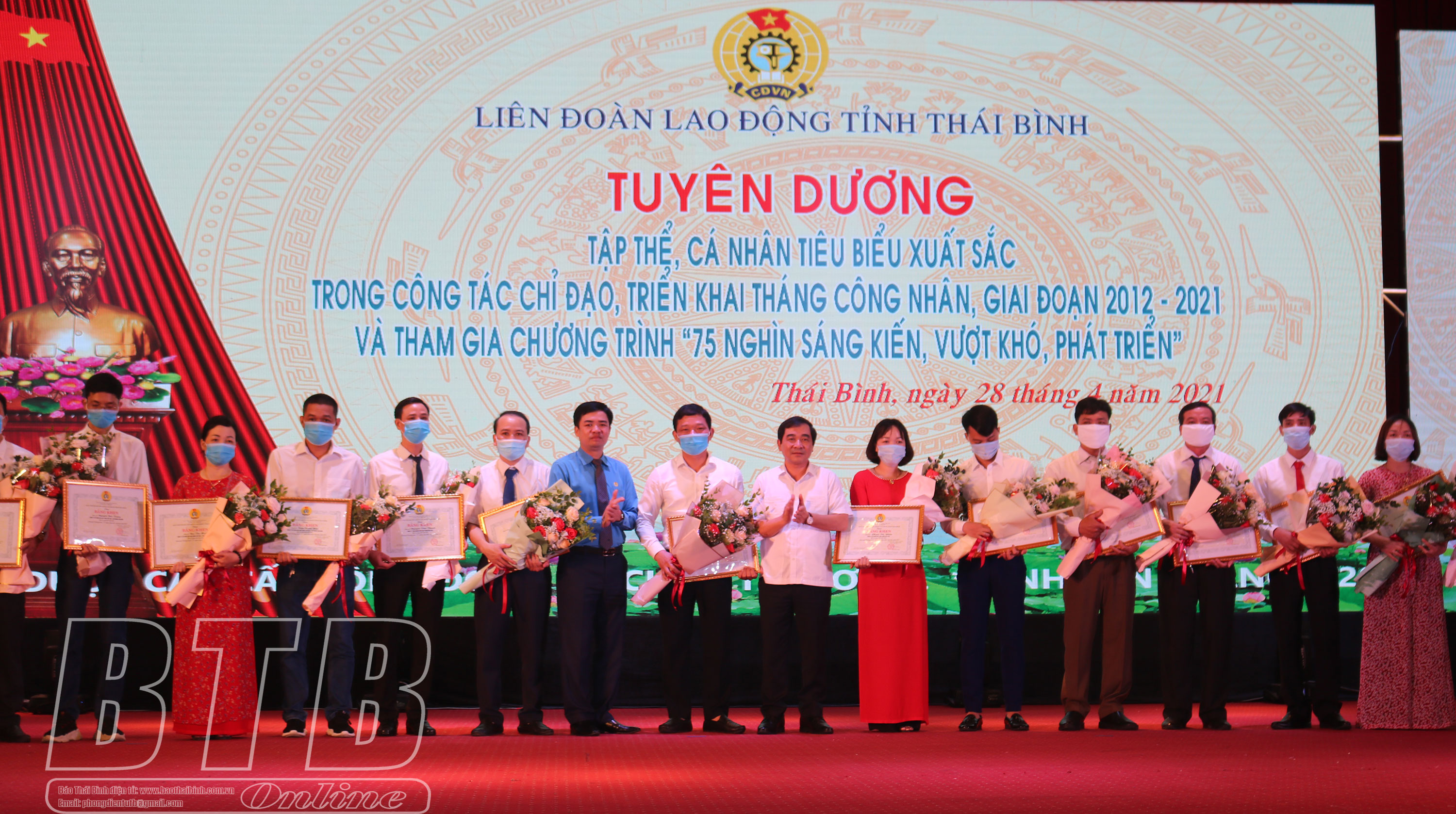 Tại lễ phát động, Liên đoàn Lao động tỉnh đã khen thưởng cho 100 tập thể, cá nhân tiêu biểu xuất sắc trong tổ chức, triển khai tháng công nhân giai đoạn 2012-2021 và khen thưởng cho công nhân lao động có nhiều sáng kiến tiêu biểu tham gia chương trình “75 nghìn sáng kiến vượt khó, phát triển” do Tổng Liên đoàn Lao động Việt Nam phát động.