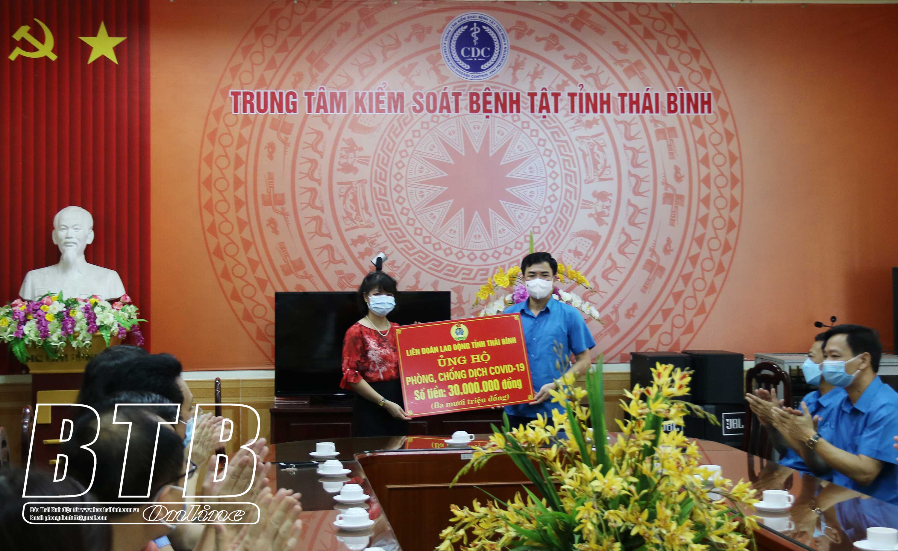 Tại Bệnh viện Đa khoa tỉnh và Trung tâm Kiểm soát bệnh tật tỉnh, Liên đoàn Lao động tỉnh đã trao tặng mỗi đơn vị 30 triệu đồng để động viên các cán bộ, y bác sĩ đang thực hiện công tác phòng, chống dịch Covid-19.