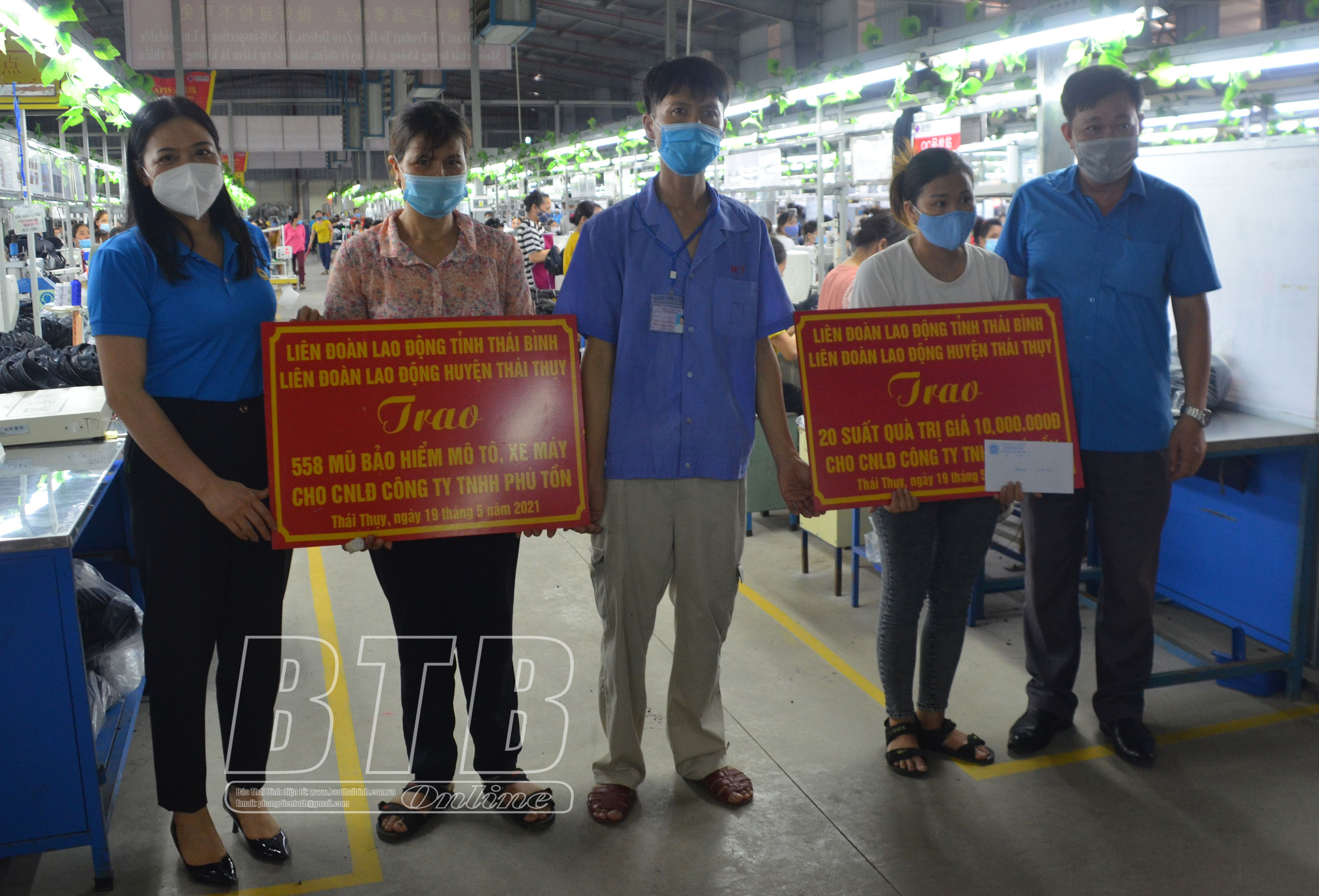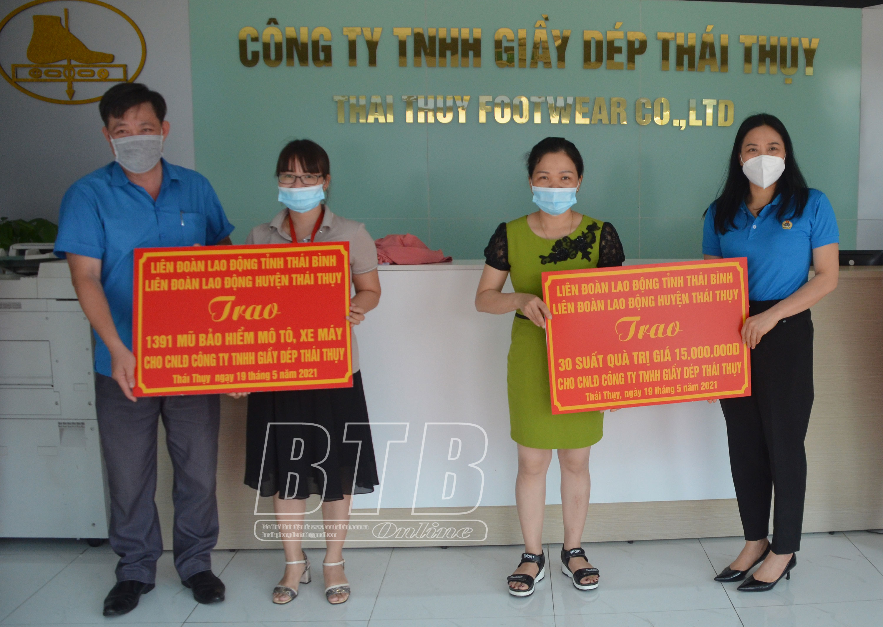 Nhân dịp tháng công nhân, tháng hành động an toàn, vệ sinh lao động, Liên đoàn Lao động tỉnh, Liên đoàn Lao động huyện Thái Thụy đã trao tặng 50 suất quà, mỗi suất trị giá 500 nghìn đồng và gần 2.000 mũ bảo hiểm xe máy để động viên công nhân lao động của 2 doanh nghiệp.