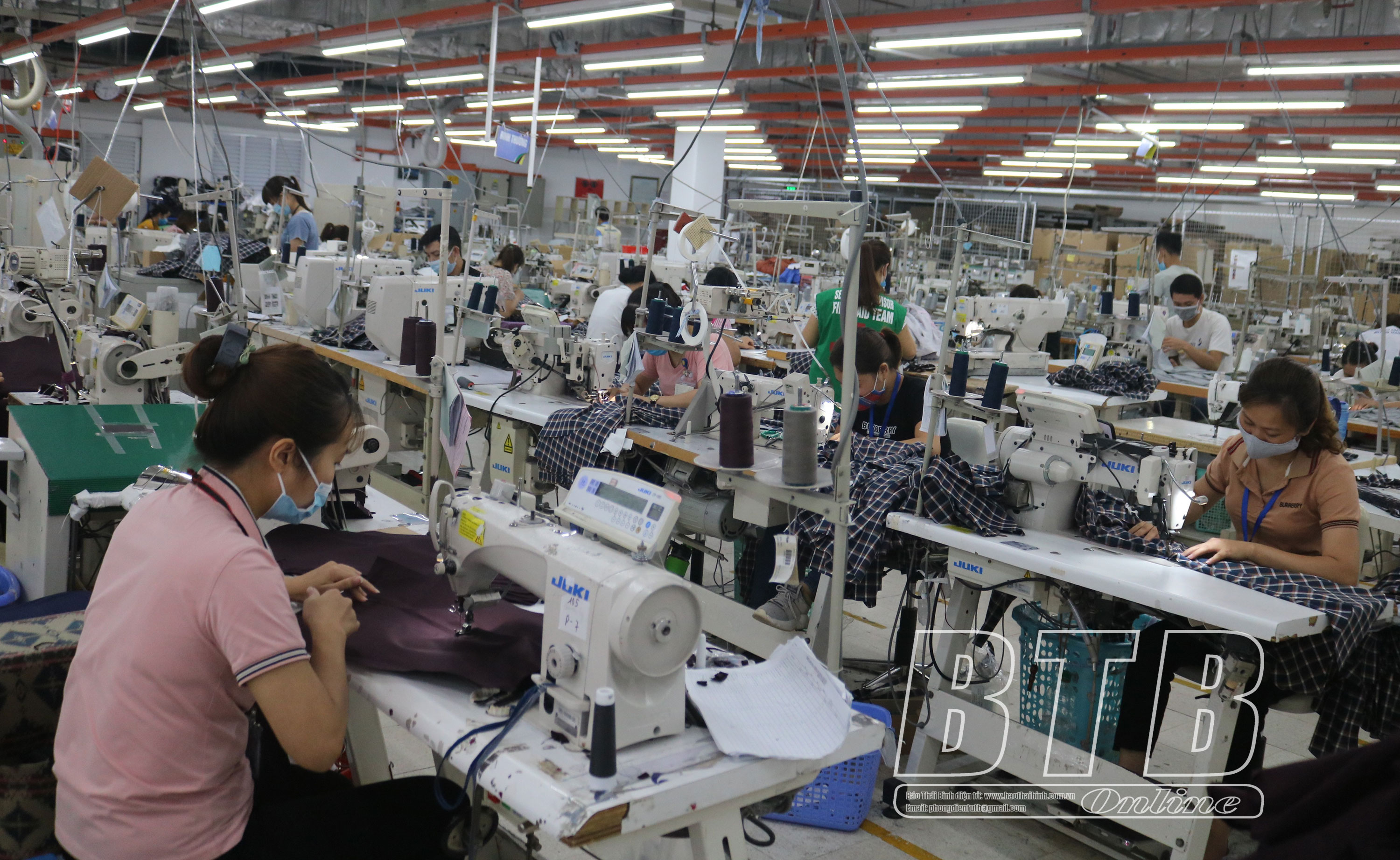 Tại Công ty TNHH May Texhong Thái Bình, khu công nghiệp Phúc Khánh, khi đến Công ty làm việc, tất cả công nhân lao động đều thực hiện nghiêm việc đo thân nhiệt, sát khuẩn tay. Công ty tổ chức phun thuốc khử trùng toàn bộ nhà xưởng một tuần 3 lần và duy trì hệ thống quạt thông gió để bảo đảm sự thông thoáng. 100% công nhân đeo khẩu trang trong suốt quá trình làm việc; chuẩn bị riêng cốc uống nước để hạn chế nguy cơ lây nhiễm.
