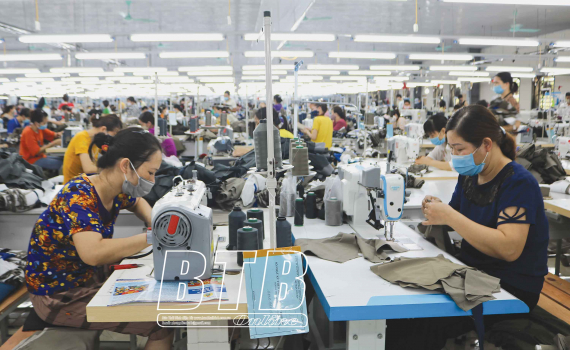 Ông Phạm Văn Tuấn, Chủ tịch Hội đồng quản trị, Tổng giám đốc Công ty cho biết: Công ty thành lập và đi vào hoạt động năm 2019, chuyên gia công các mặt hàng thời trang. Trước ảnh hưởng của dịch Covid-19, Công ty đã nỗ lực tìm đối tác, chuyển hướng sang sản xuất đồ bảo hộ lao động, bảo hộ y tế xuất khẩu sang các thị trường Mỹ, Nhật. Vừa nỗ lực tìm kiếm thị trường vừa duy trì sản xuất để bảo đảm thu nhập cho gần 300 công nhân với lương bình quân 7 triệu đồng/người/tháng. Với quan điểm người lao động là tài sản quý nhất của Công ty nên song song thực hiện nghiêm các quy định của Nhà nước về chế độ đãi ngộ, Công ty đặc biệt chú ý bảo đảm các điều kiện sức khỏe thể chất và tinh thần cho người lao động. Trong bối cảnh dịch Covid-19 diễn biến phức tạp tại nhiều tỉnh, thành phố trong nước, Công ty đẩy mạnh tuyên truyền, nâng cao ý thức cho công nhân và thực hiện nghiêm các biện pháp phòng, chống dịch trong quá trình sản xuất. Với tổng diện tích 13.000m2, ngoài xưởng sản xuất, Công ty đã đầu tư hoàn thiện khu nhà ăn khang trang, hỗ trợ bữa ăn miễn phí cho công nhân và xây dựng khu vườn sinh vật cảnh phục vụ công nhân thư giãn trong giờ nghỉ. Nhờ đó, ngoài giữ uy tín, bảo đảm ổn định lượng hàng xuất khẩu 80.000 sản phẩm/tháng, Công ty đã ký được các đơn hàng đến hết quý I/2022.