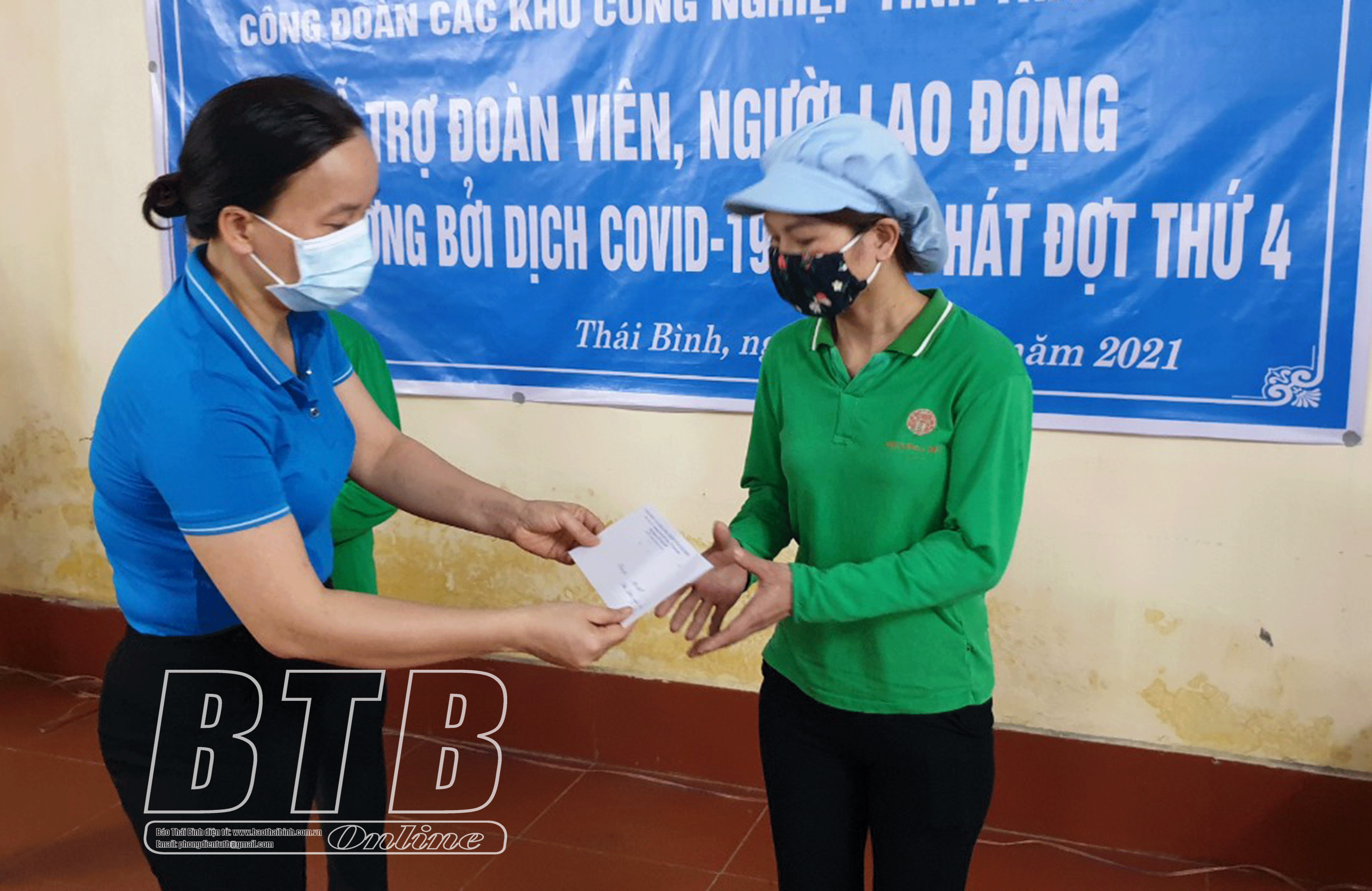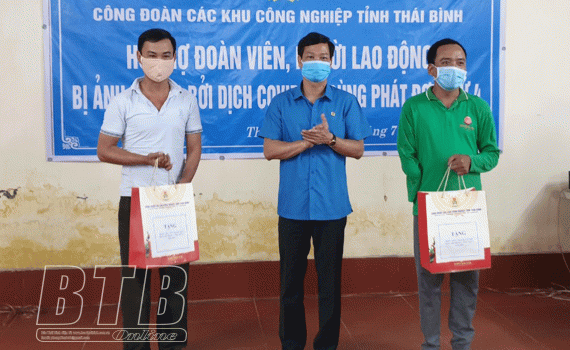 Công đoàn các khu công nghiệp tỉnh trao kinh phí hỗ trợ đoàn viên, người lao động bị ảnh hưởng bởi dịch Covid-19.