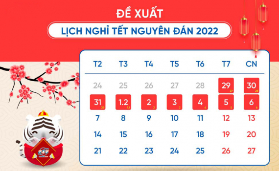 Theo đó, Bộ Lao động - Thương binh và Xã hội đề xuất lịch nghỉ Tết Nguyên đán Nhâm Dần gồm 5 ngày (một ngày trước Tết và 4 ngày sau Tết).