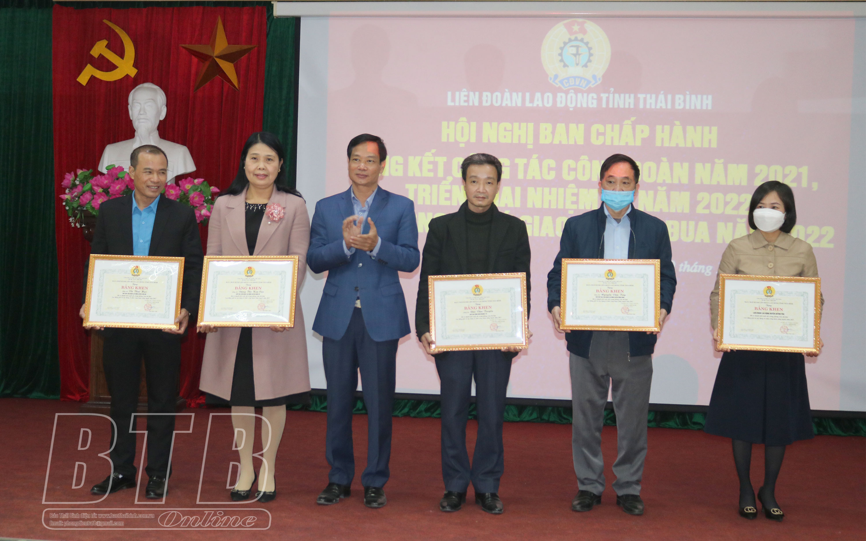 Lãnh đạo Liên đoàn Lao động tỉnh trao bằng khen cho tập thể, cá nhân có nhiều thành tích trong hoạt động công đoàn năm 2021.