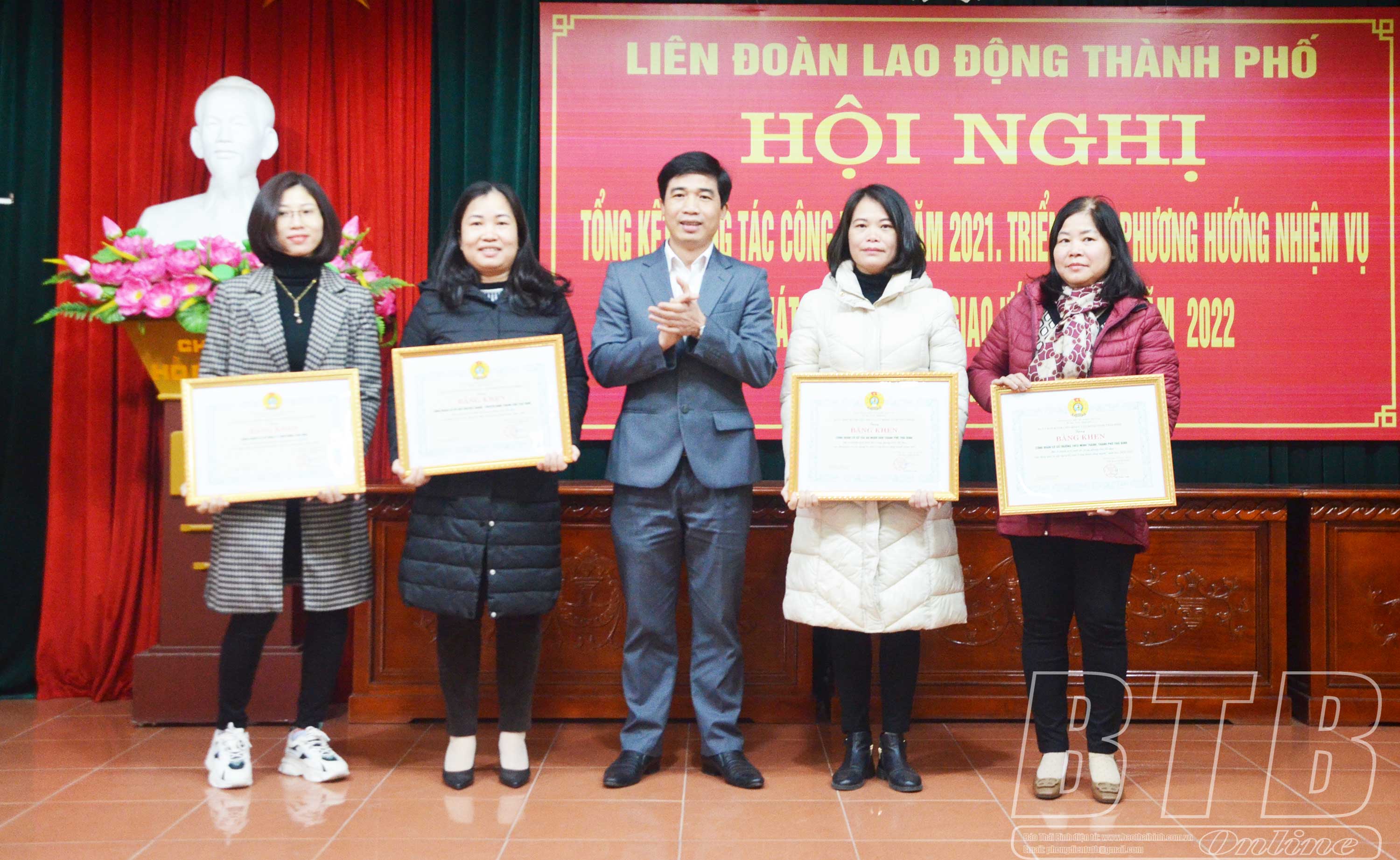 Tại hội nghị, các tập thể, cá nhân có thành tích xuất sắc trong hoạt động công đoàn được Tổng Liên đoàn Lao động Việt Nam, Liên đoàn Lao động tỉnh tặng cờ thi đua, bằng khen; UBND thành phố và Liên đoàn Lao động thành phố tặng giấy khen.