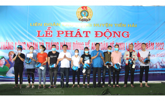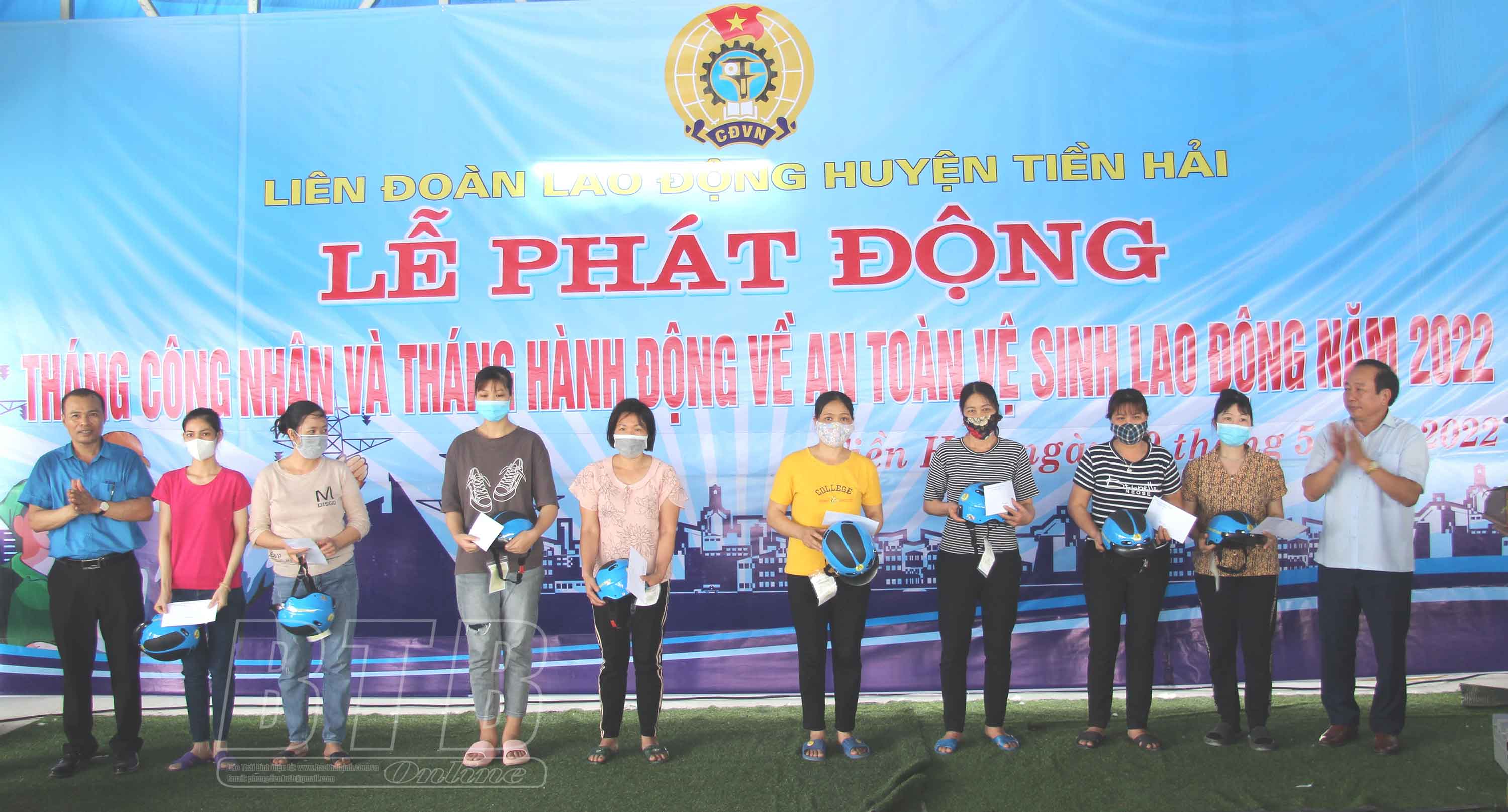 Nhân dịp lễ phát động tháng công nhân, tháng hành động về an toàn vệ sinh lao động, LĐLĐ tỉnh đã trao 80 triệu đồng kinh phí hỗ trợ xây dựng 2 nhà mái ấm công đoàn; LĐLĐ huyện Tiền Hải trao 297 suất quà cho đoàn viên công đoàn, người lao động có hoàn cảnh khó khăn, mỗi suất quà trị giá 500 nghìn đồng và 1 mũ bảo hiểm.