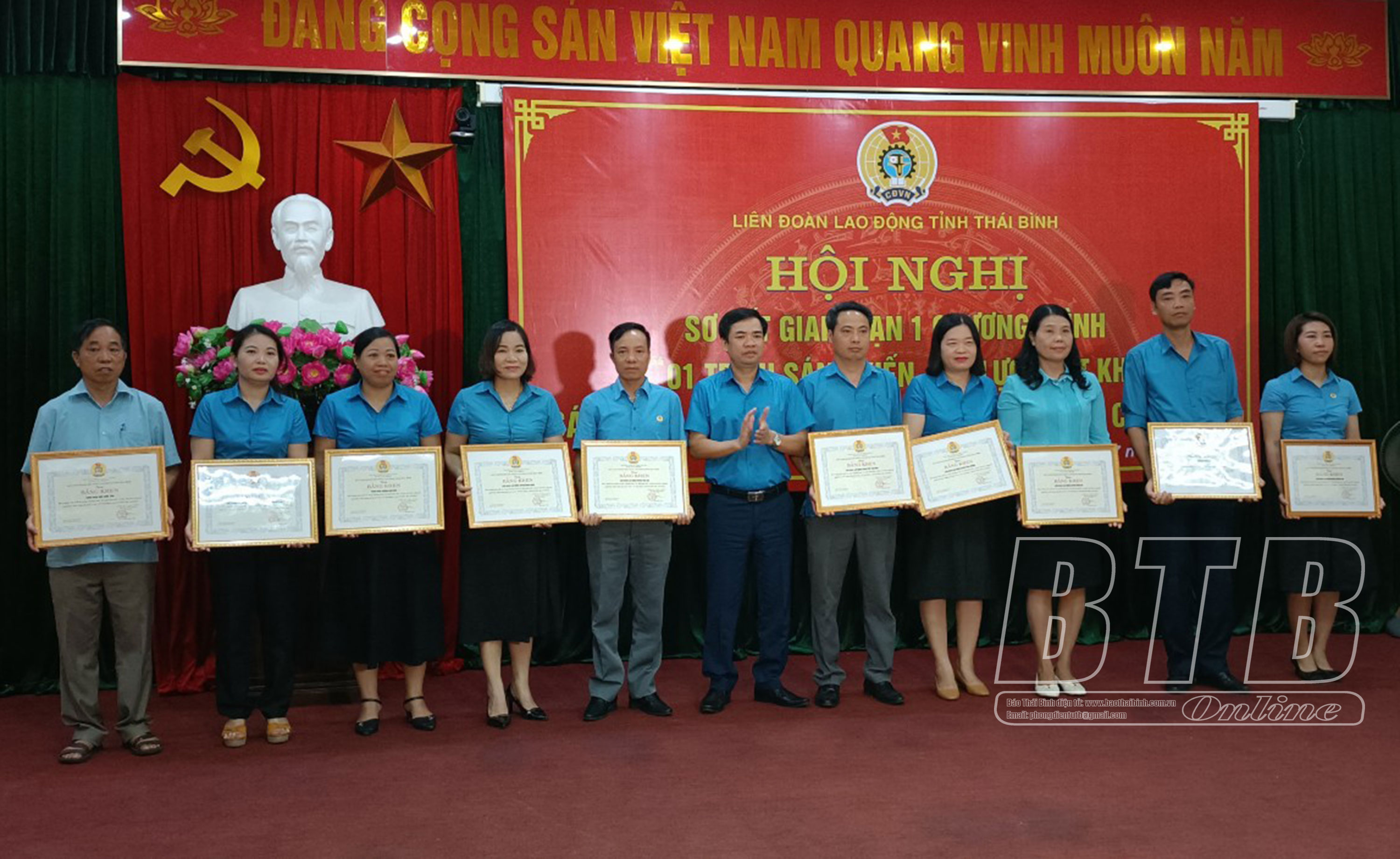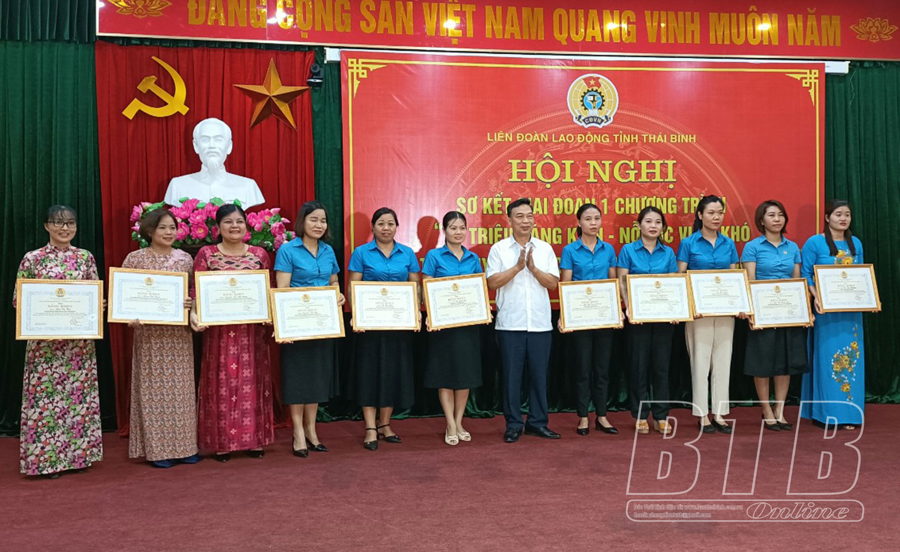 Nhân dịp này, LĐLĐ tỉnh đã trao bằng khen cho các tập thể, cá nhân đạt thành tích xuất sắc trong thực hiện chương trình “1 triệu sáng kiến - nỗ lực vượt khó, sáng tạo, quyết tâm chiến thắng đại dịch Covid-19”.