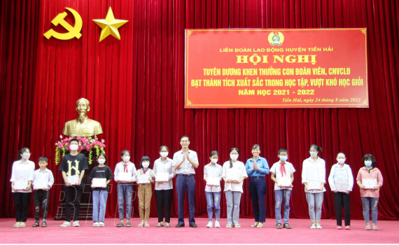 Năm học 2021-2022, huyện Tiền Hải có 3.721 cháu là con đoàn viên, công nhân, viên chức, người lao động từ lớp 1 đến lớp 12 đạt học sinh giỏi. Liên đoàn Lao động huyện Tiền Hải đã tuyên dương, khen thưởng 214 học sinh, trong đó, có 20 em học sinh giỏi có hoàn cảnh đặc biệt khó khăn, 25 học sinh giỏi xuất sắc đạt giải Nhì, Ba trong kỳ thi quốc gia, 115 học sinh giỏi cấp tỉnh, 54 học sinh vượt khó học giỏi năm học 2021-2022, với số tiền khen thưởng gần 80 triệu đồng.