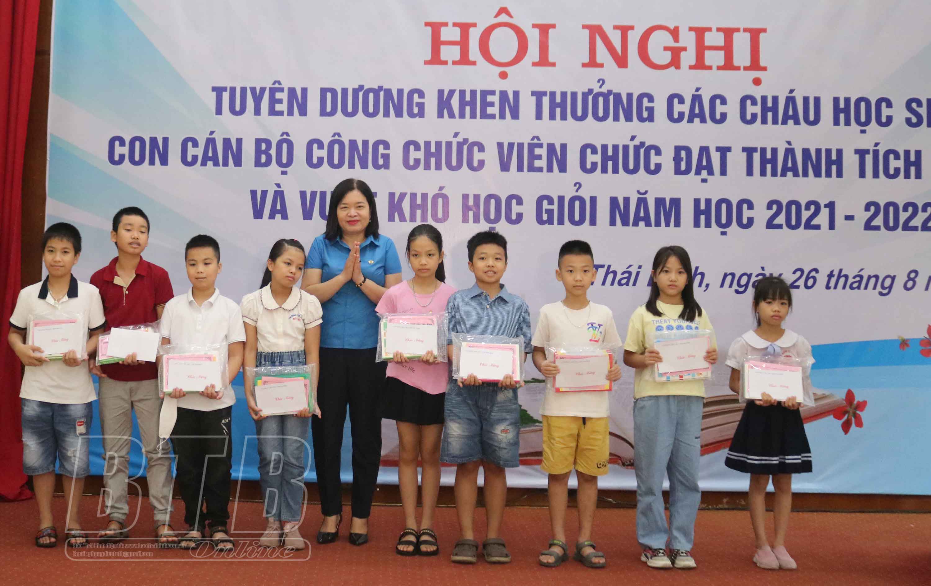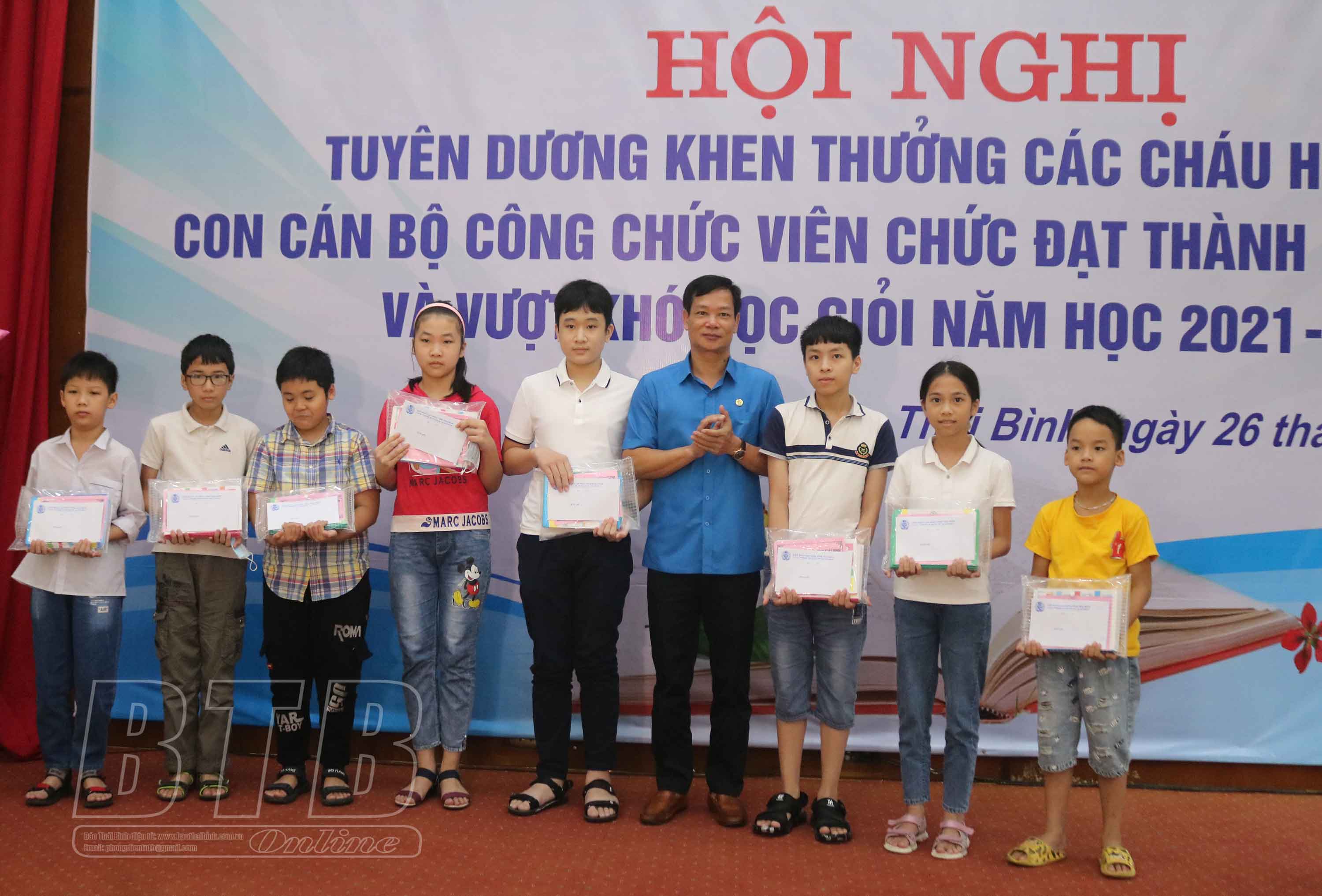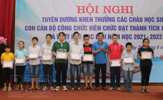 Tại hội nghị, Công đoàn Viên chức tỉnh đã khen thưởng 132 cháu có thành tích xuất sắc và vượt khó học giỏi năm học 2021-2022.