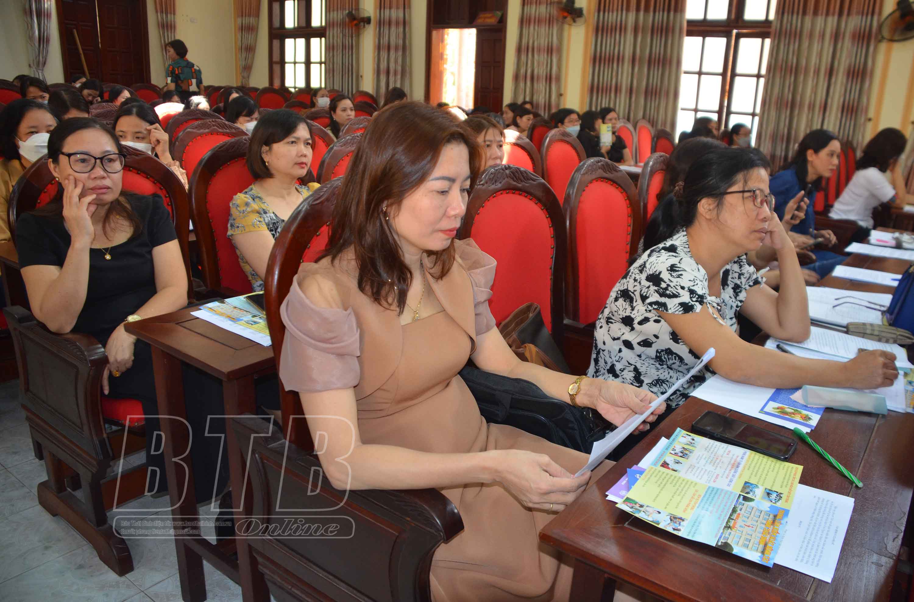Đoàn viên nữ các công đoàn cơ sở thuộc Liên đoàn Lao động huyện Vũ Thư dự hội nghị truyền thông.