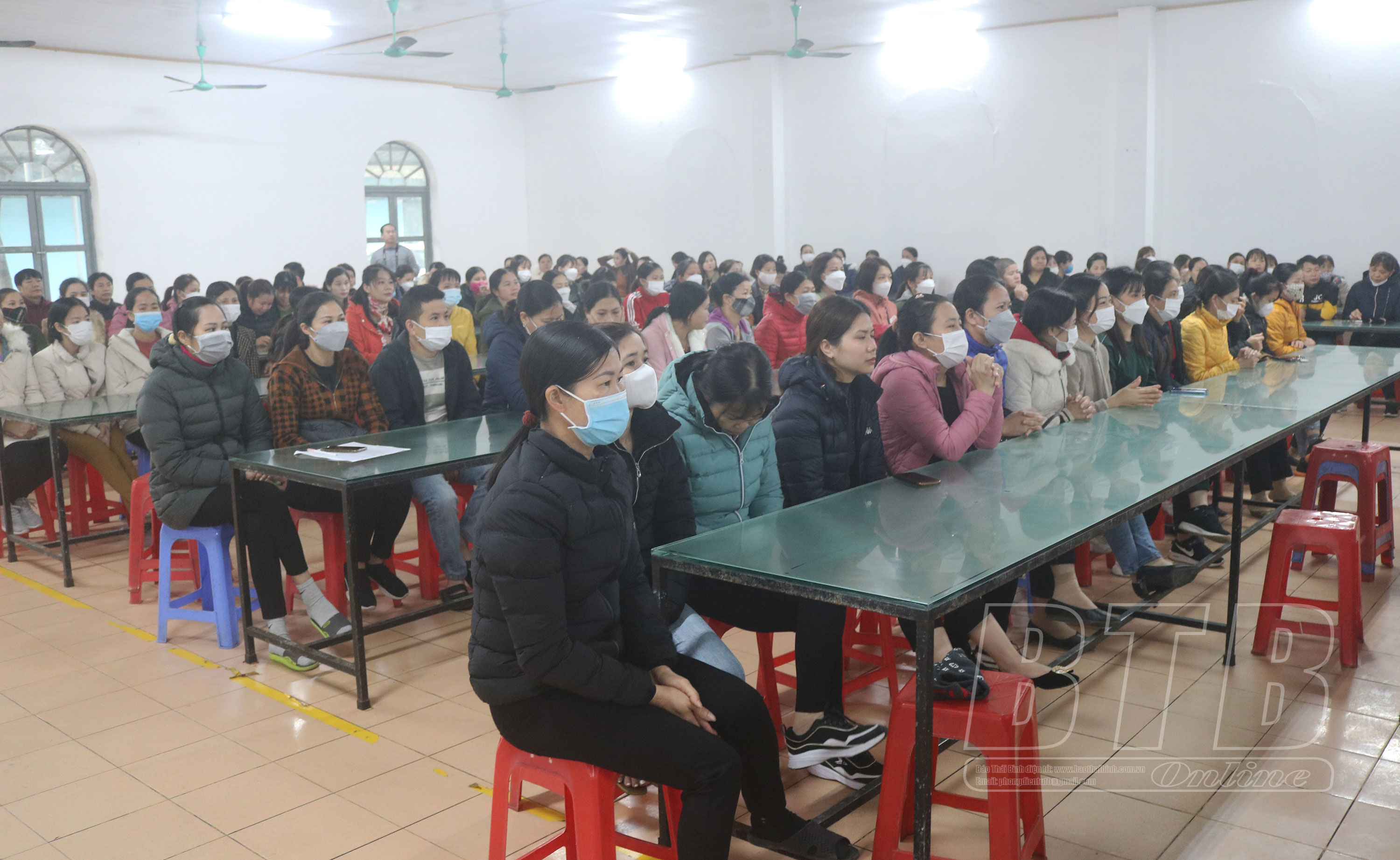 Đoàn viên, công nhân lao động của Công ty Poong Shin Vina tham dự buổi truyền thông.