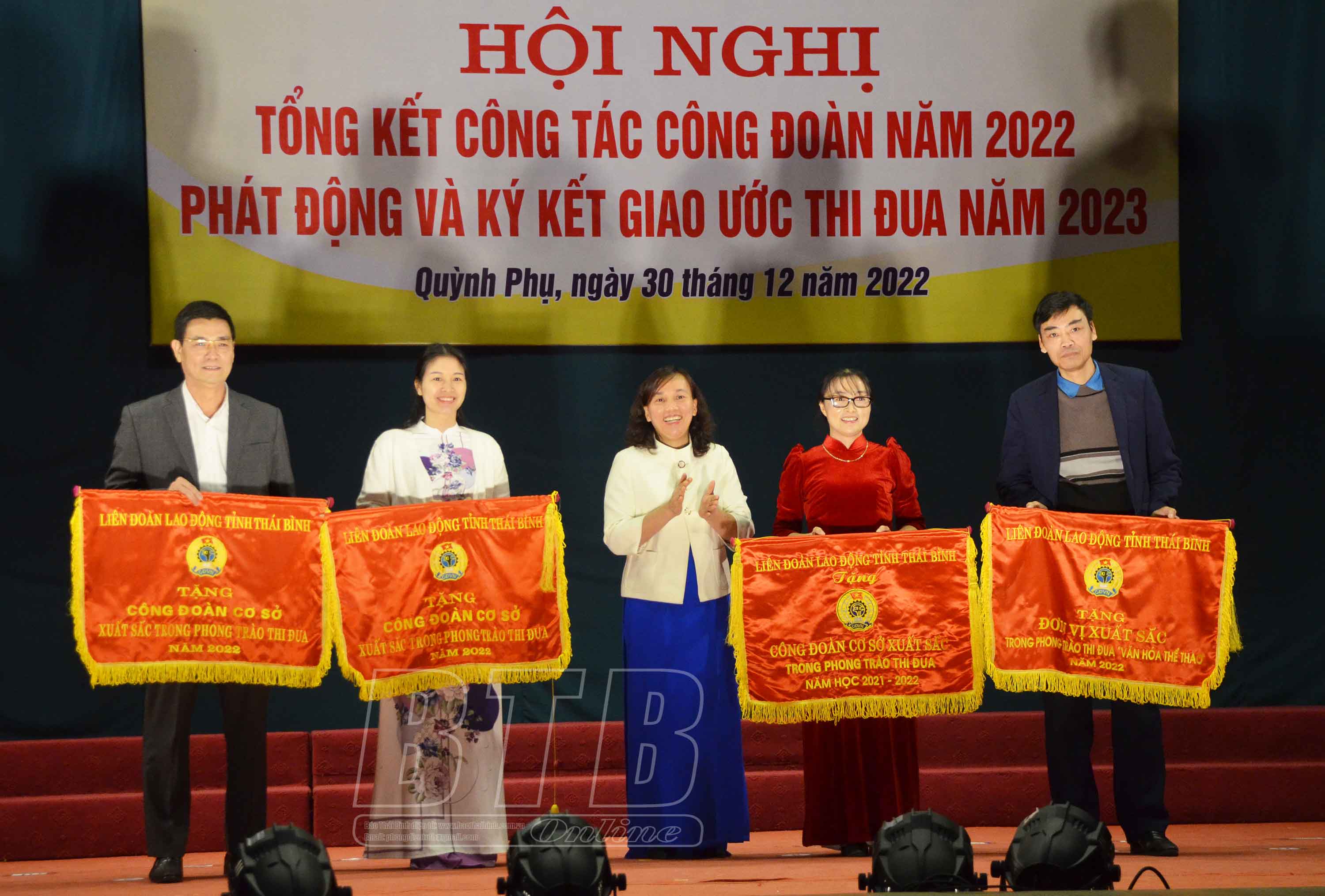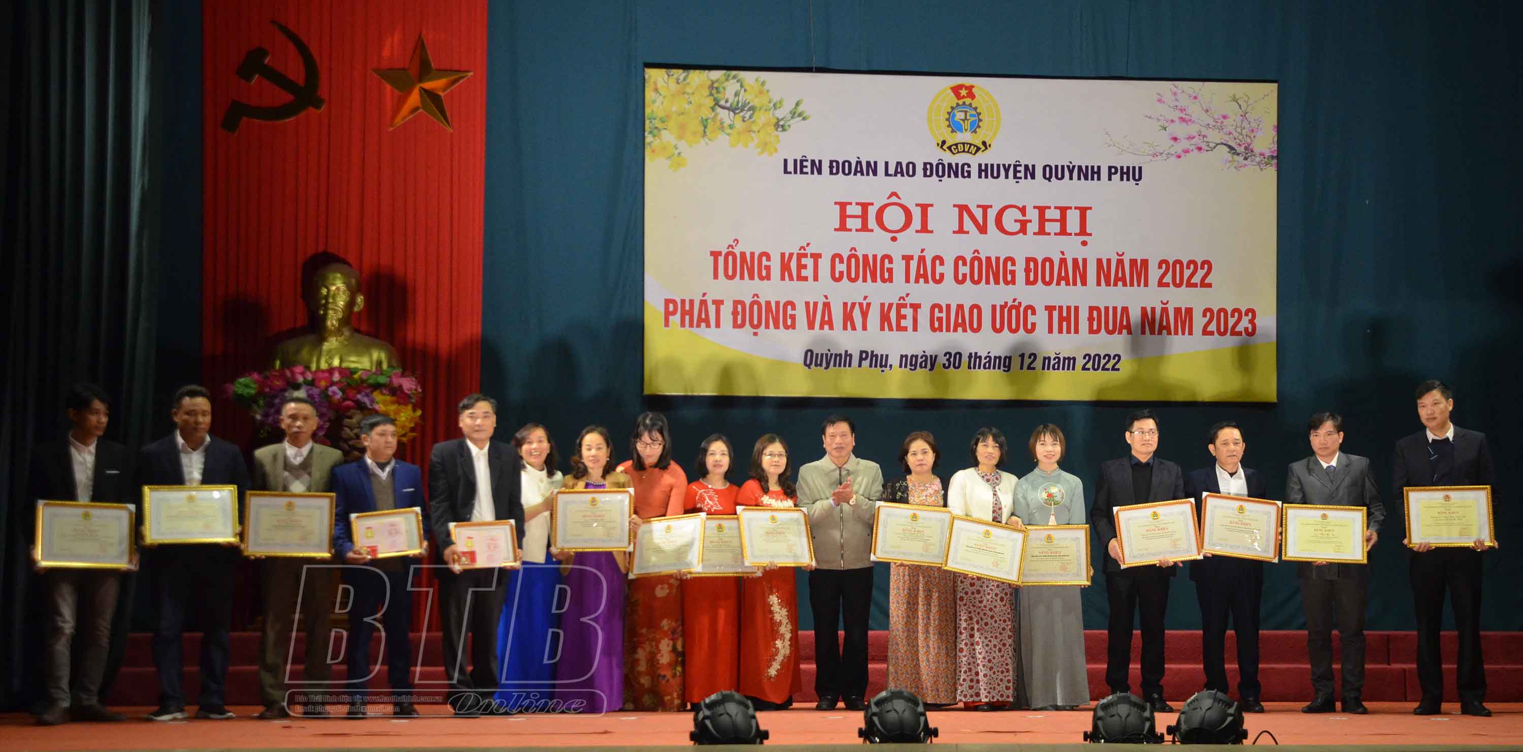 Tại hội nghị, LĐLĐ huyện Quỳnh Phụ đã phát động, ký giao ước thi đua năm 2023 và tổ chức khen thưởng cho các tập thể, cá nhân có nhiều thành tích trong hoạt động công đoàn năm 2022.