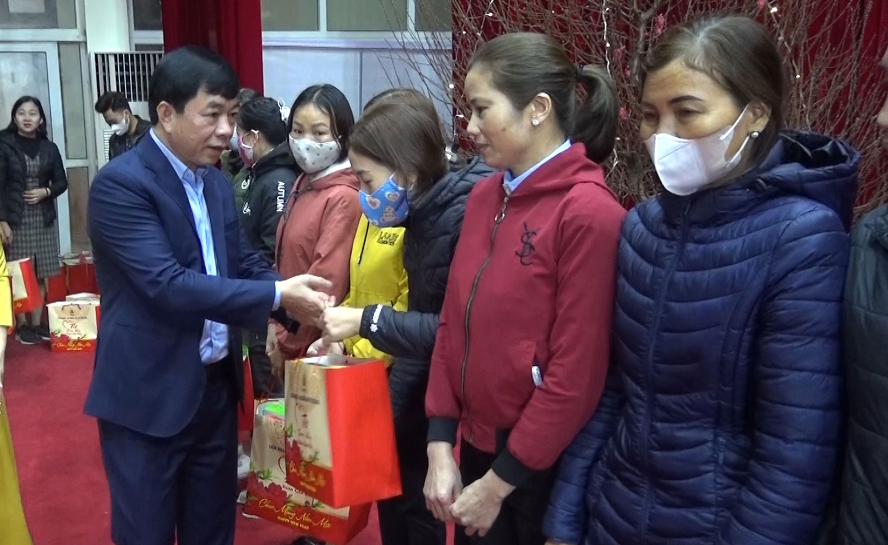 Lãnh đạo Huyện ủy Tiền Hải trao quà tết cho công nhân, người lao động có hoàn cảnh đặc biệt khó khăn.
